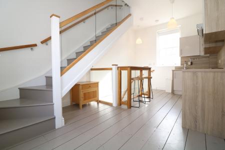 Forming part of this grade II listed building. The Property comprises ground floor entrance door. with staircase leading to first floor. Open plan fitted kitchen with washer drier. Combination oven. Fridge. Breakfast bar. Lounge area. Stairs to second floor with bedroom. and contemporary shower room with sink and w.c. Part/Unfurnished.