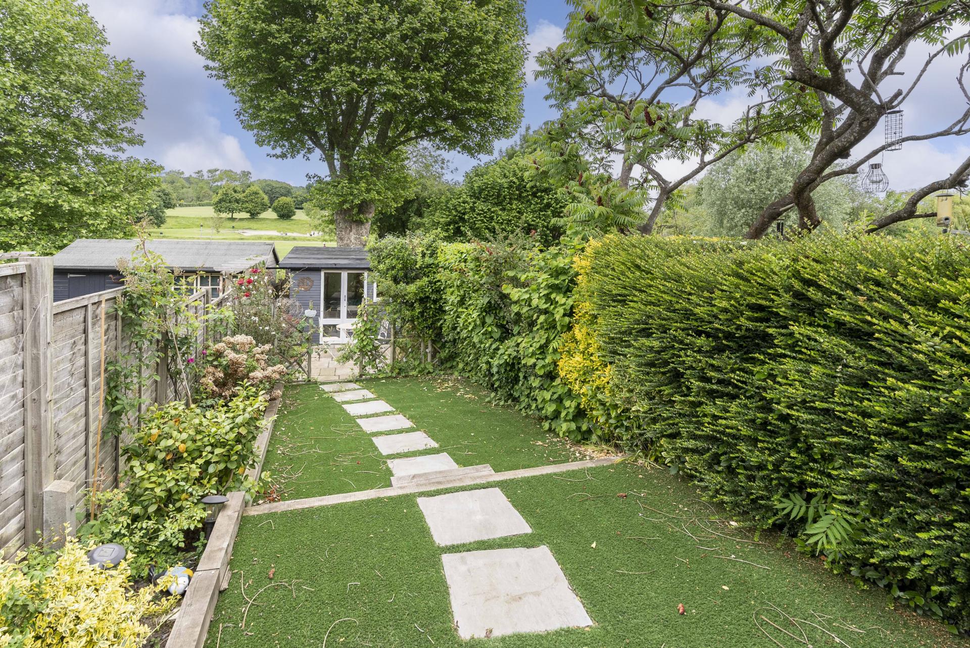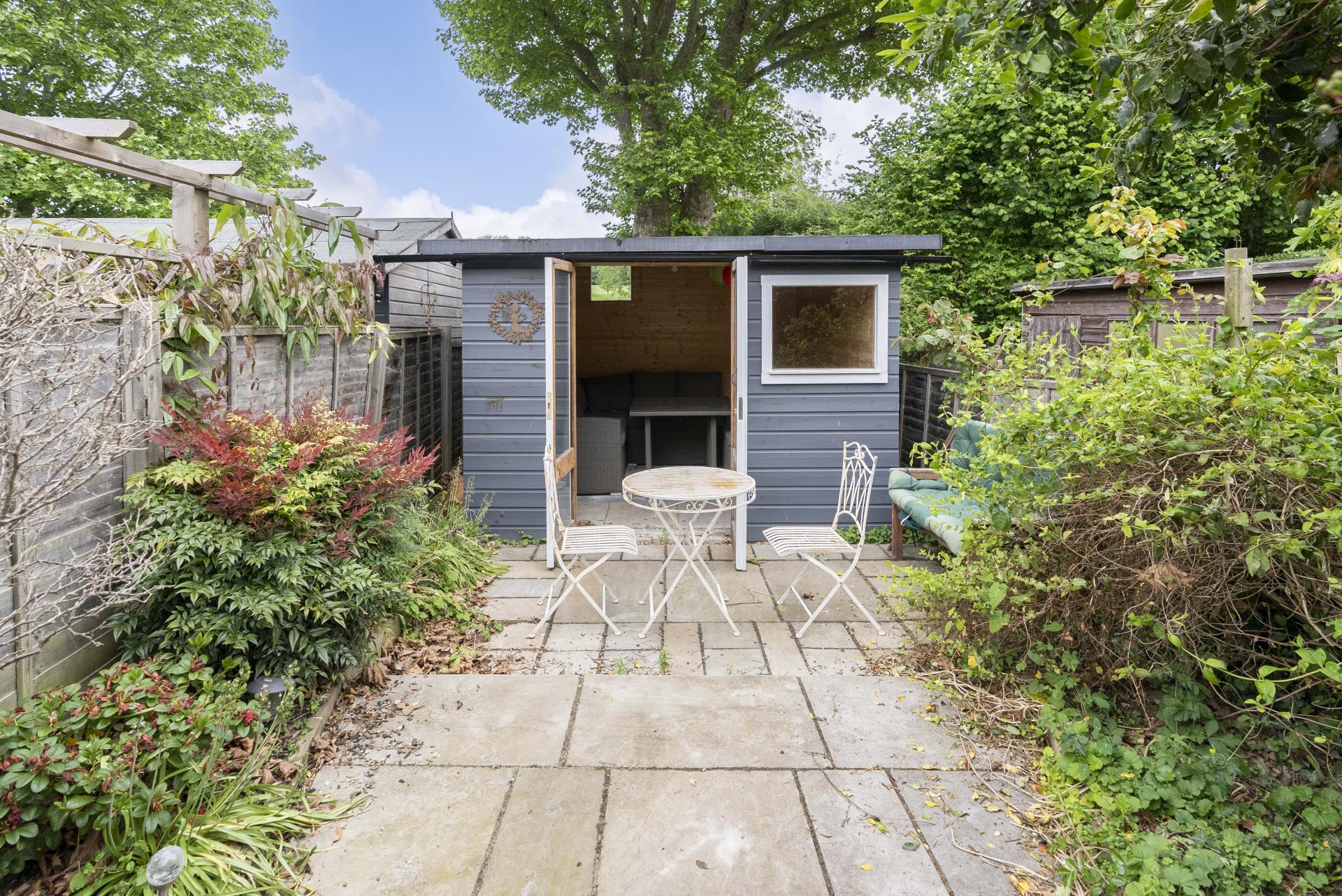 Outside is a pretty low maintenance tiered garden with decking and patio areas, leading down to the bottom of the garden with large modern summerhouse equipped with power.