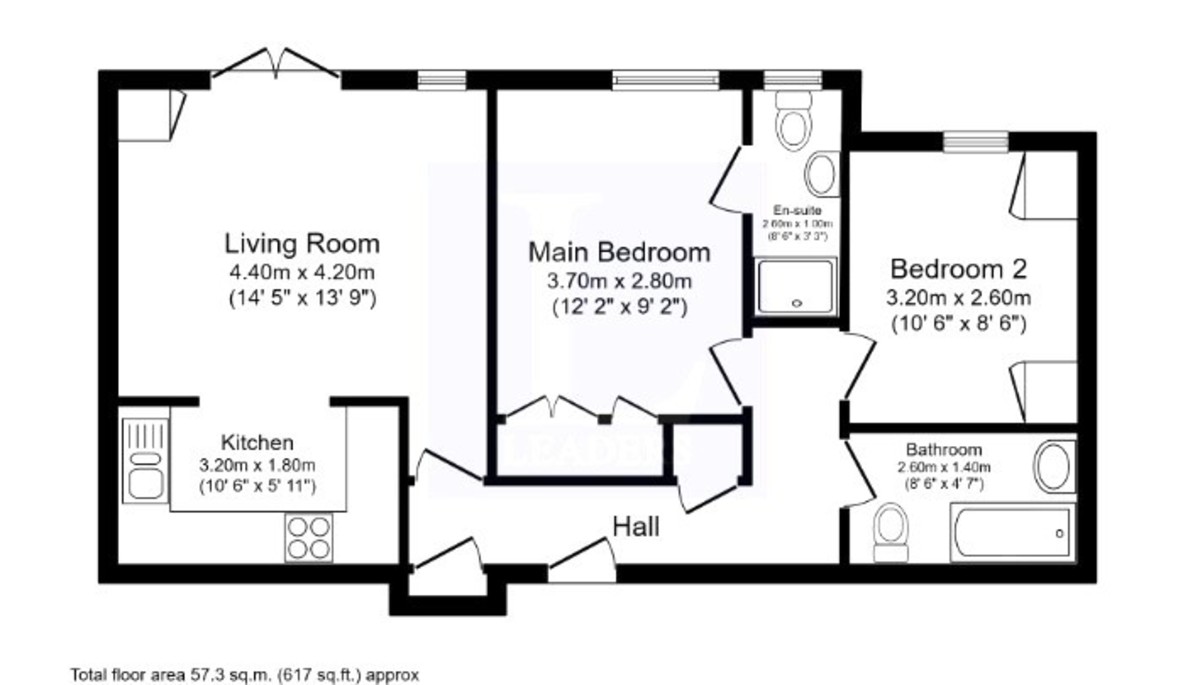 The property comprises entrance hall with storage cupboards. Reception room with French doors to balcony. Open plan fitted kitchen. Master bedroom with wardrobes and en-suite shower room. Second double bedroom with fitted wardrobes and storage. Family bathroom with bath and shower over. Residents secure parking.