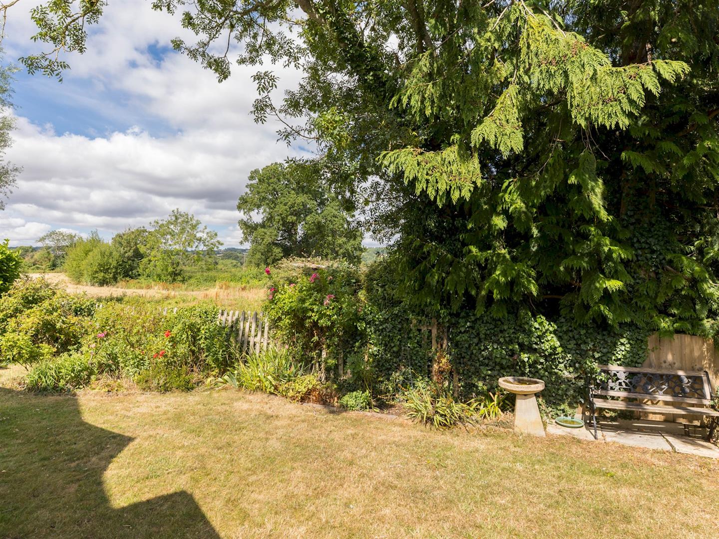 Outside, the well-maintained garden provides a peaceful retreat, featuring a patio seating area and stunning views over the Cotswold countryside. At the bottom of the garden, a charming bench overlooks a gentle stream, creating a perfect spot to enjoy the outdoors. The property also benefits from two off-road parking spaces.