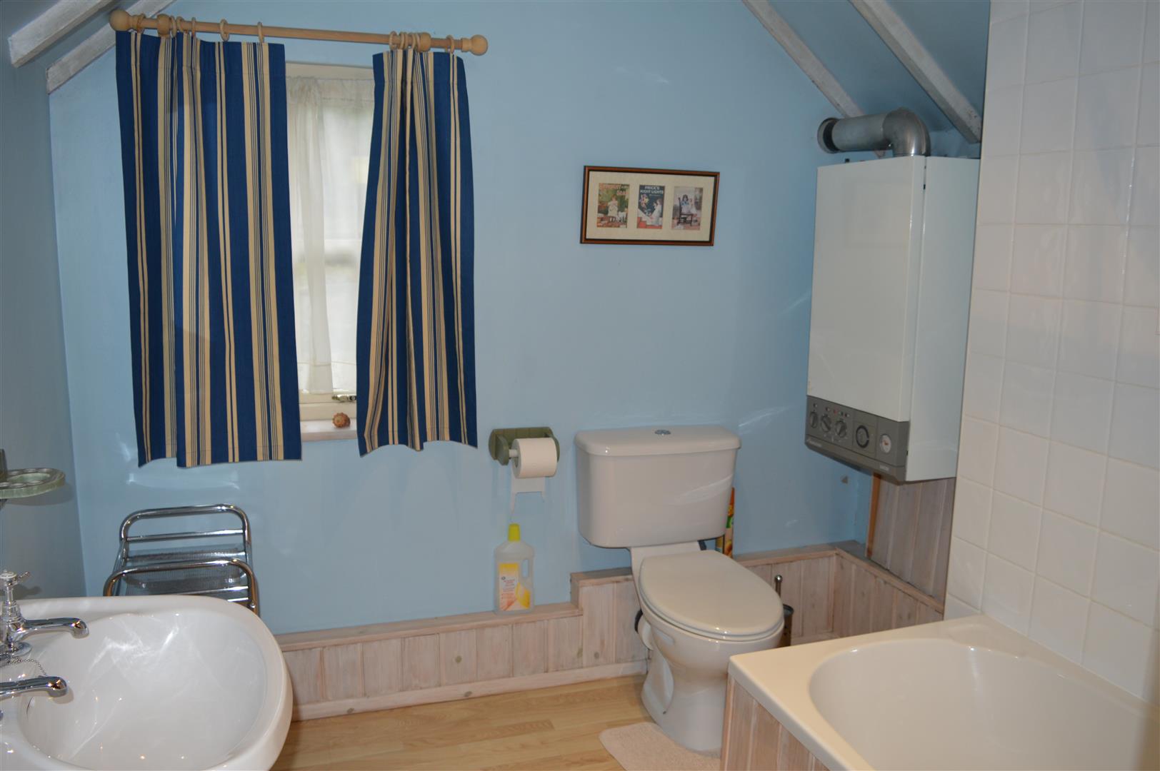 Bathroom - Family bathroom, comprising bath with shower over, wash hand basin and wc. Laminate flooring and window overlooking the rear courtyard