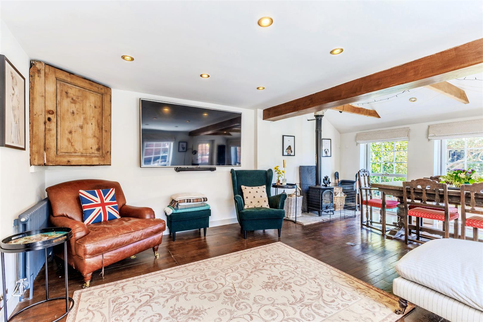Double aspect living room with fitted drinks cupboard/full height storage cupboard