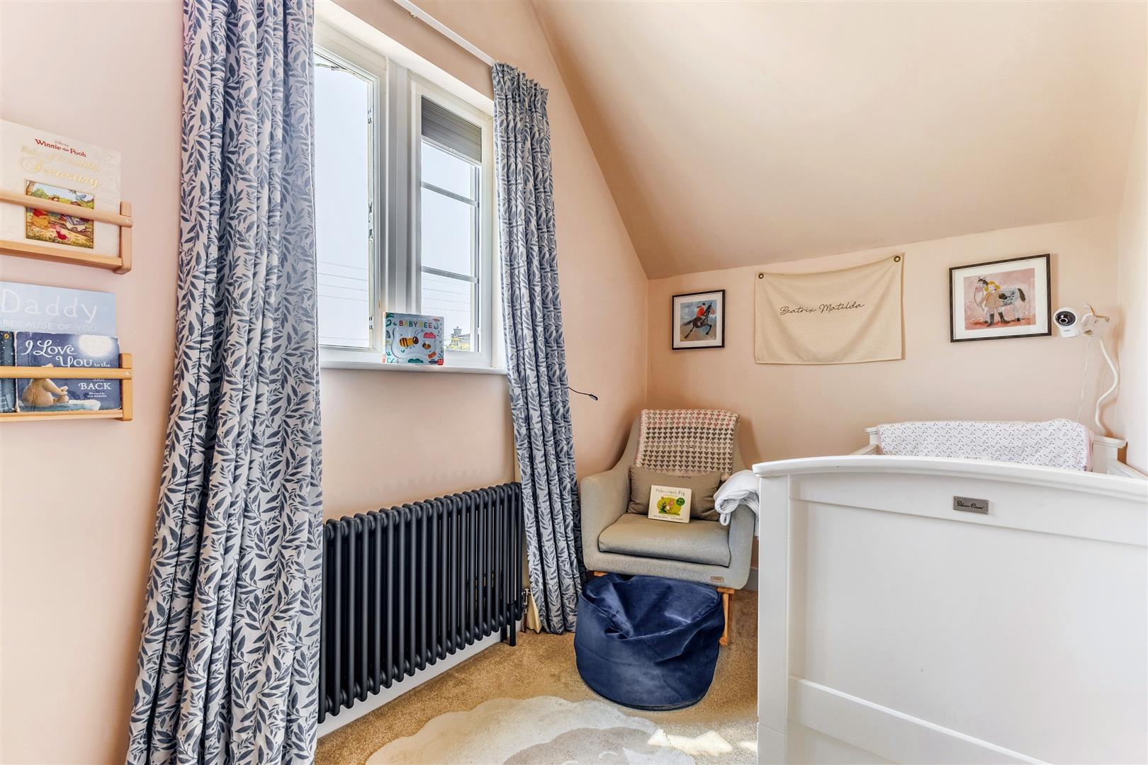 Small double bedroom currently used as a childs nursery with views across farmland to the rear.