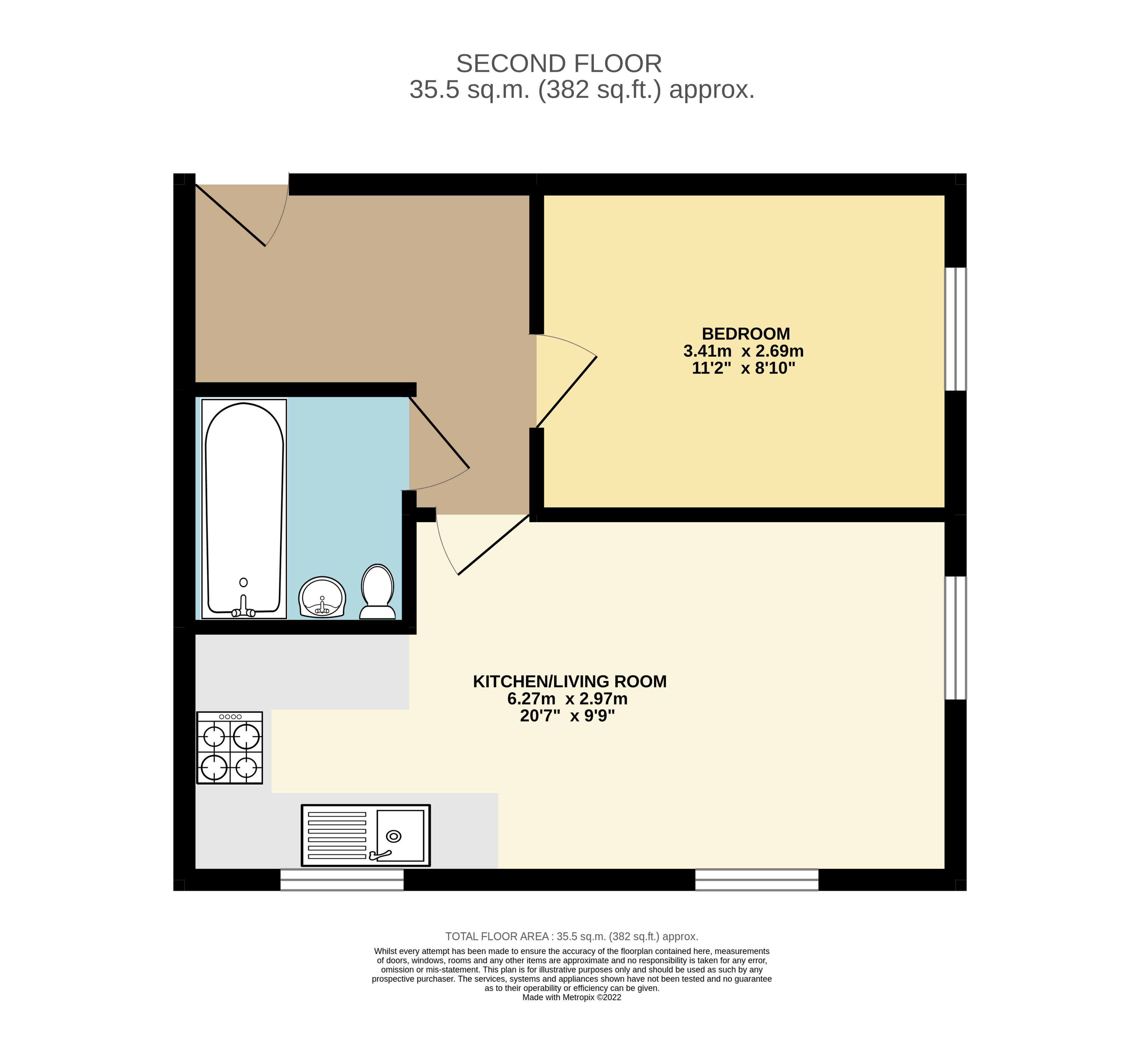 Internally the property boasts an open plan living kitchen area that is flooded with natural light via several windows as well as velux windows. In addition to the living area there is also a double bedroom as well as a three piece bathroom.