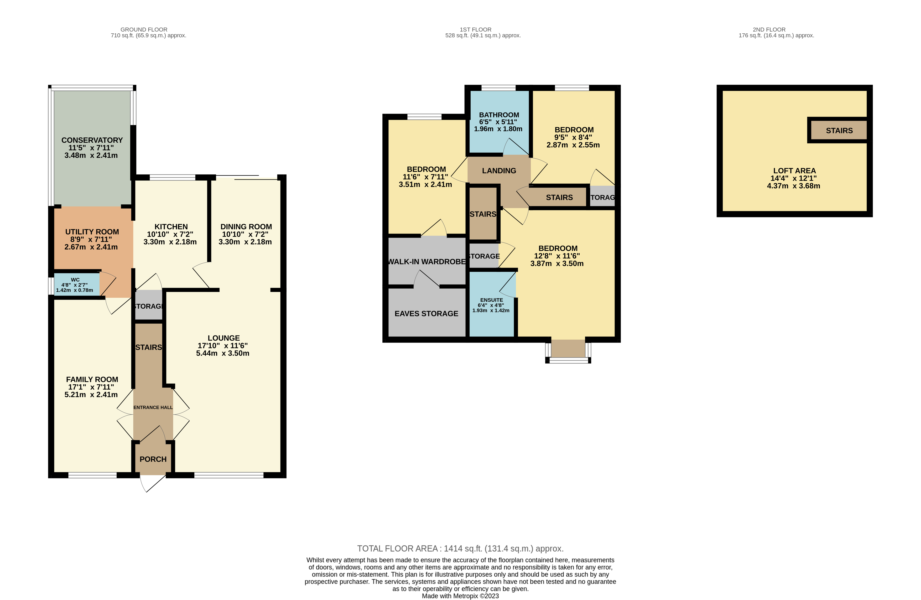 On the first floor are three double bedrooms with en-suite to the main and walk-in wardrobe to the smallest, family bathroom and stairs to the loft room off the landing.
