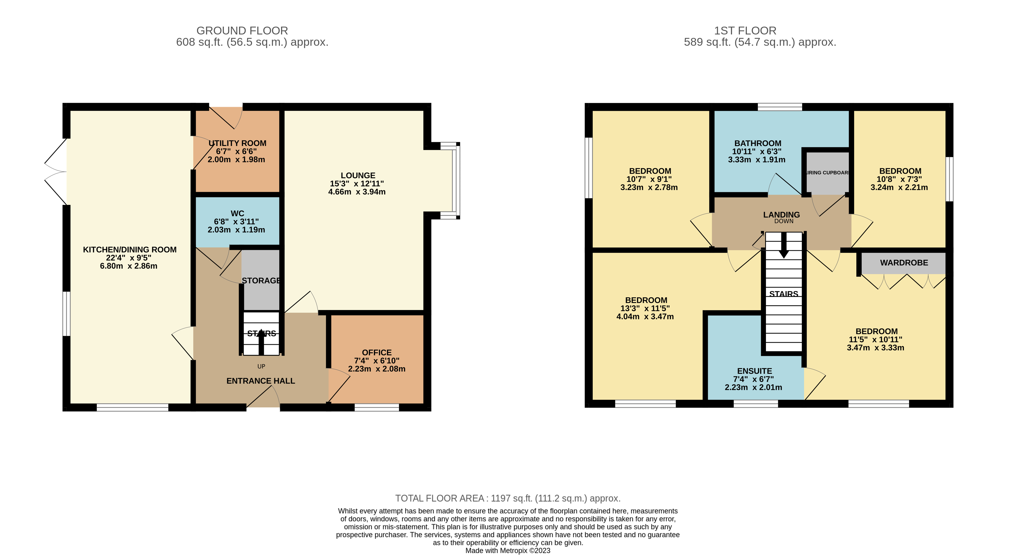 The first floor consists of landing with loft storage, airing cupboard housing a hot water cylinder, main double bedroom with fitted wardrobes and has a three piece en-suite (which includes a double shower cubicle), and a further three double bedrooms, three piece shower room (which includes a double shower cubicle).