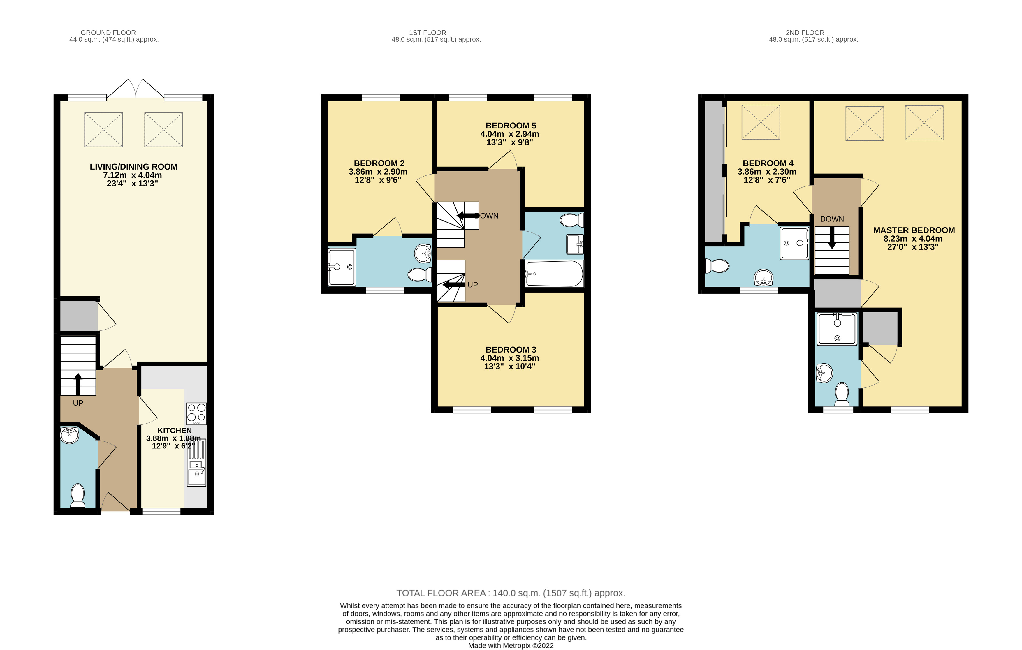 The estate is well maintained and looked after, giving the impression that these properties are still like a new home! This particular house is the definition of a TARDIS and consists of an entrance hall which welcomes you straight away. There is a 23' living/dining area to the rear with floods of natural light coming in, as well as a fitted kitchen to the front which is across the hall from the ground floor cloakroom. The first floor benefits from three bedrooms, one has an en suite shower room but either of these would work brilliantly as your home office - there is also the main family bathroom on this floor. The second floor is where you find the huge master bedroom which again benefits from an en suite shower room as does the fifth bedroom on the other side of the landing.