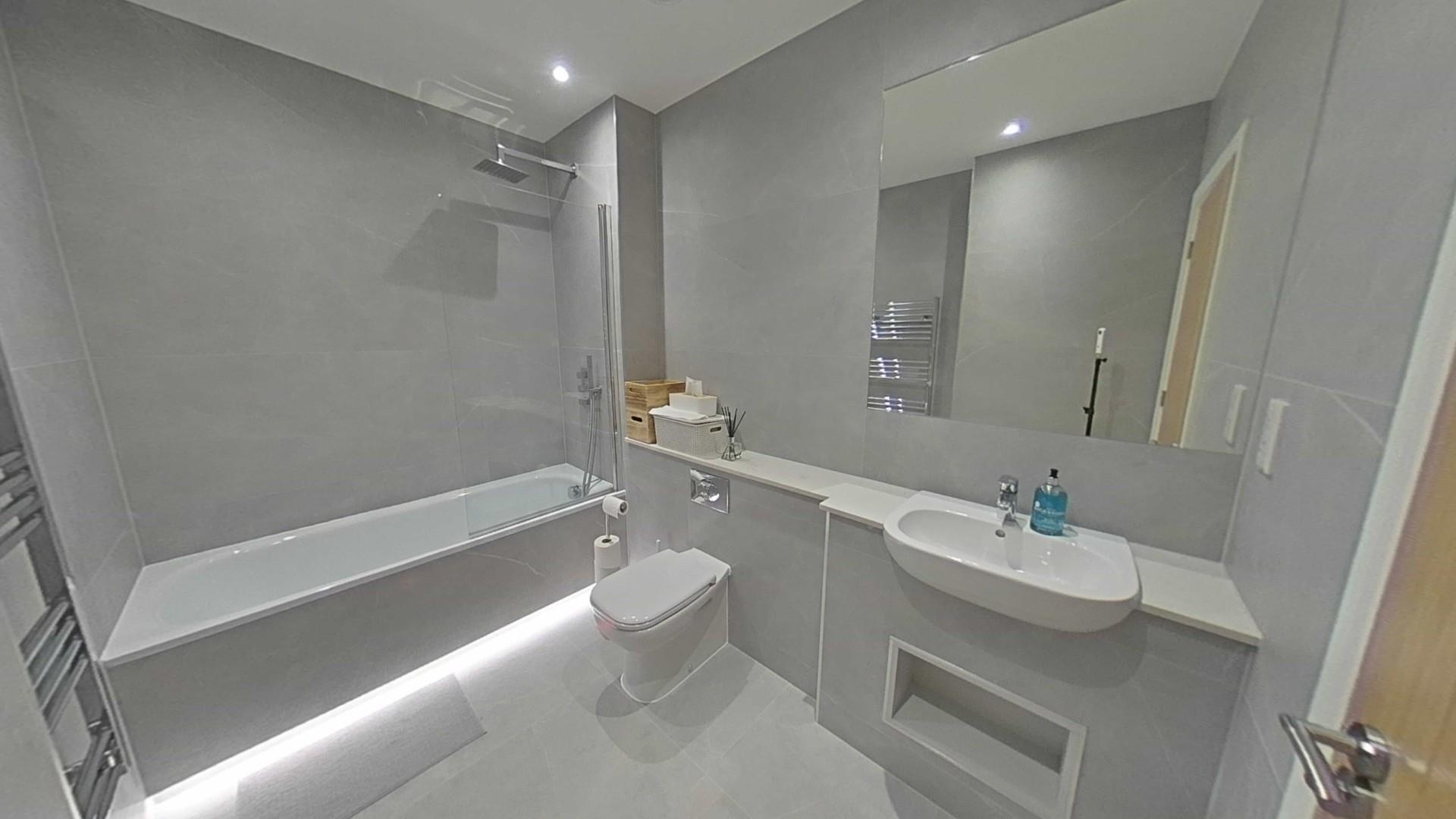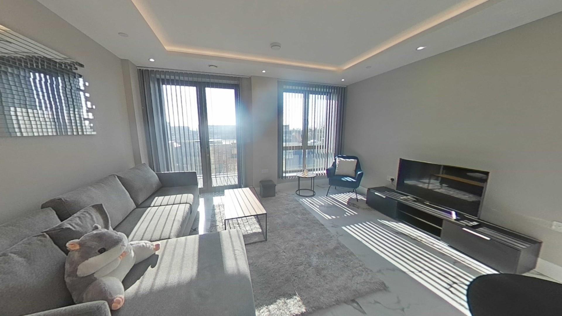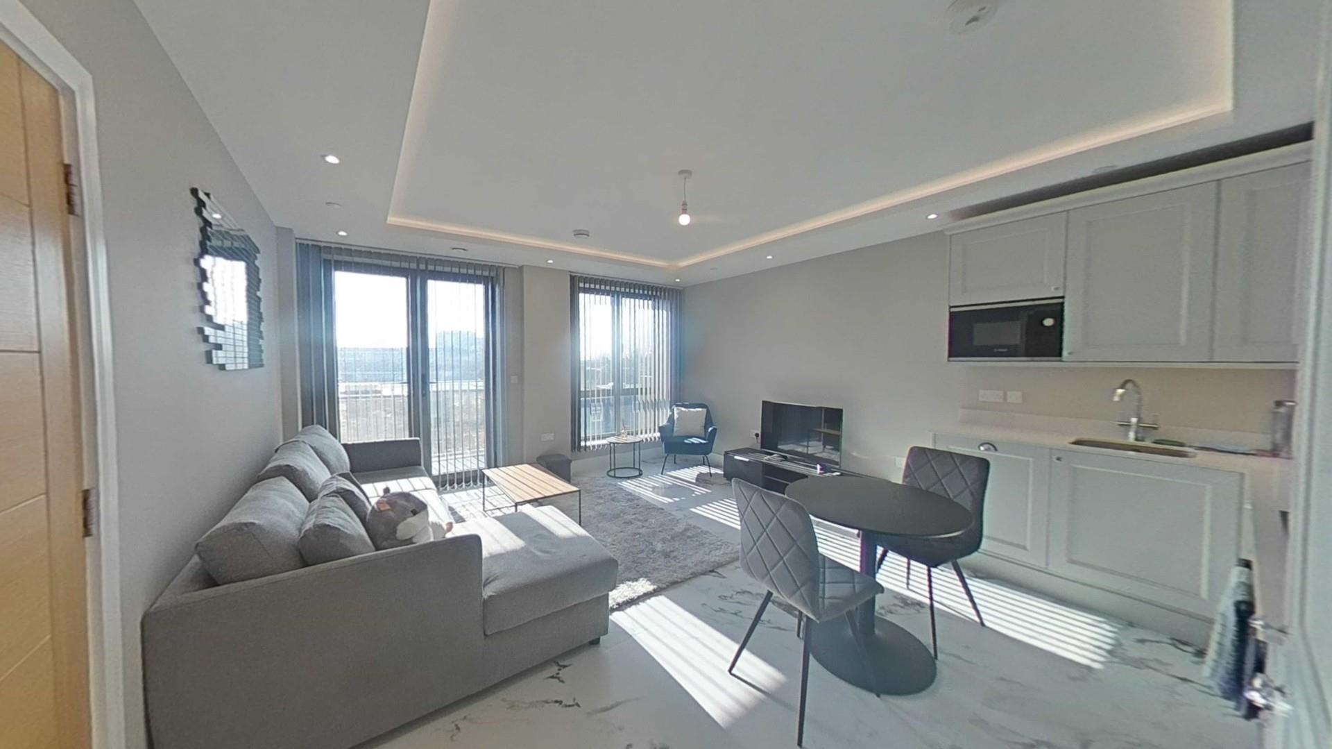 Luxury one double bedroom purpose-built apartment in a gated development on seventh floor. The property comprises spacious open plan reception room, kitchen with door onto a balcony and a luxurious bathroom.