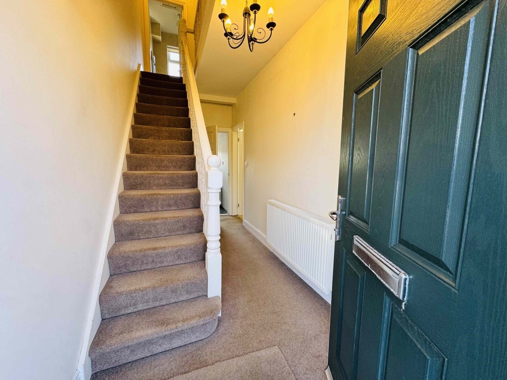 The interior boasts a spacious and functional layout designed for modern family living. The ground floor features two generous reception rooms, including a welcoming lounge and a separate formal dining room perfect for entertaining. There is a modern kitchen as well as a dedicated utility room, which comes complete with gifted white goods to help you settle in. Upstairs, you will find three well-proportioned bedrooms, with the master and second bedroom both benefiting from quality fitted wardrobes. A stylishly appointed family bathroom completes the first-floor layout.