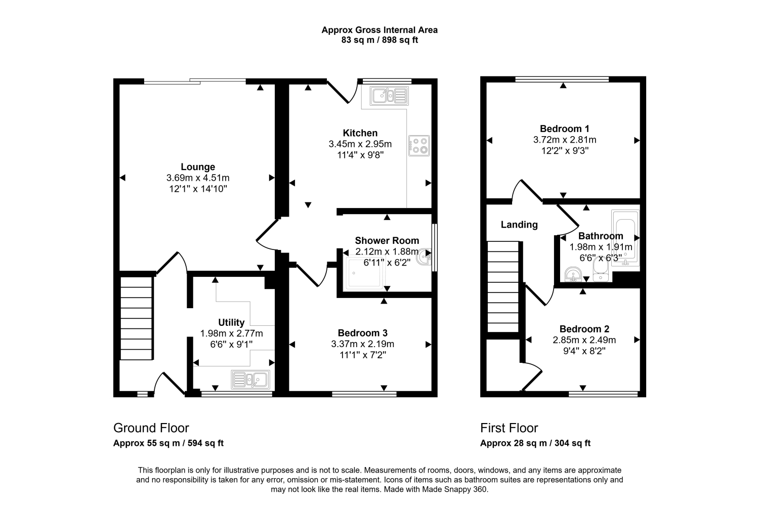 Recently redecorated throughout, this property is an excellent family home. Upon entering, there is a hallway with stairs to the top floor and a utility room to the right. There is a good-sized sitting room, with patio doors out onto the garden. From the sitting room, there is a door through to the kitchen / breakfast room, recently re-fitted shower room and bedroom 3 / study.
