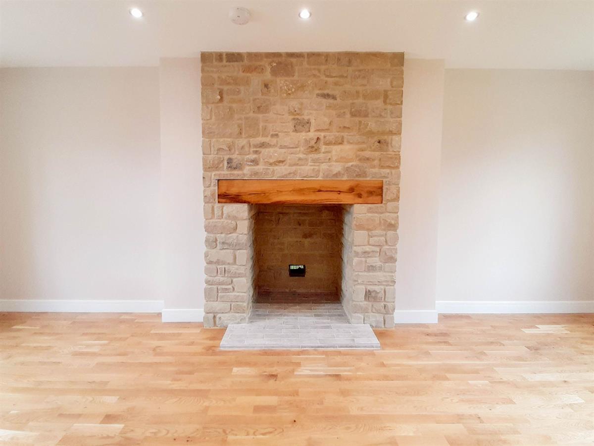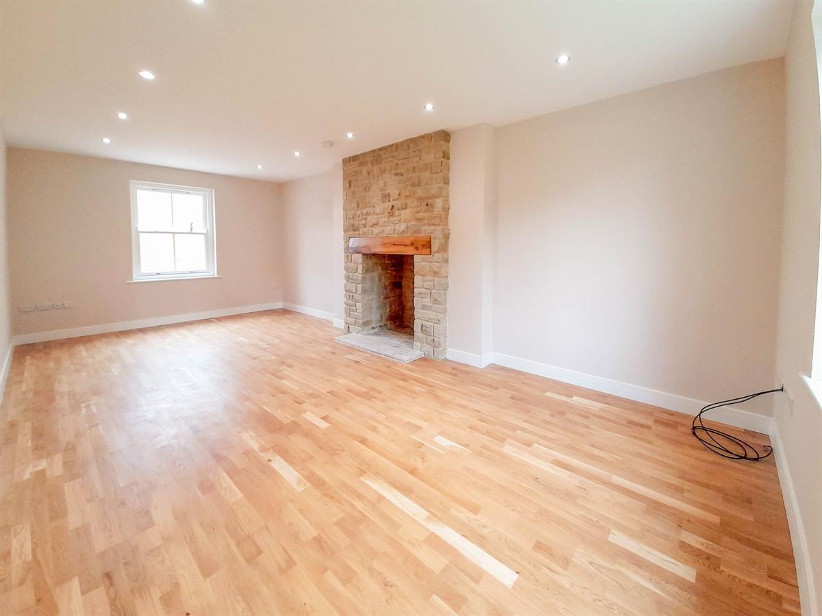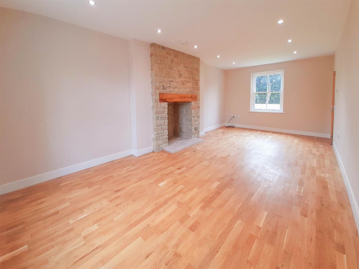 To the right of the hallway lies the living room which is a light and airy room courtesy of the dual aspect to the front and rear elevations. The solid oak flooring from the hallway continues into the living room, while the focal point is the impressive stone fireplace.