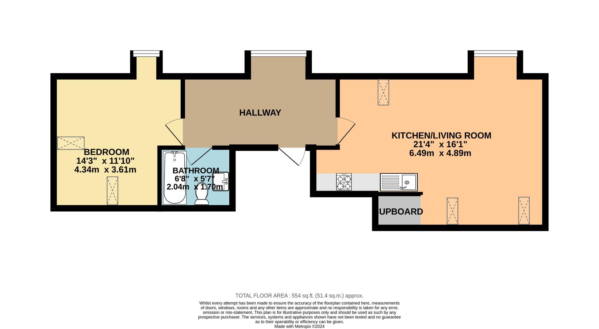 This charming home features a modern, open-plan fully fitted kitchen, a large reception room, a generous double bedroom, a well-appointed bathroom, and a spacious hallway with plenty of storage space.
