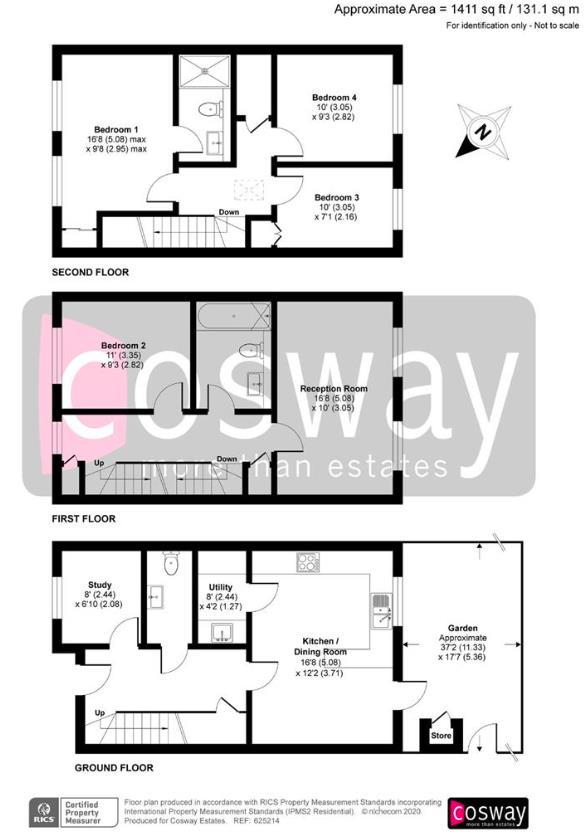 The property is arranged over three floors and to the ground floor includes a study; fully fitted modern kitchen/dining room with direct access onto a rear garden; WC and utility room. On the first floor the property offers a large and bright reception room that runs across the back of the property; a double bedroom and a family bathroom. On the second floor there is a spacious master bedroom with en-suite shower room and two further bedrooms.