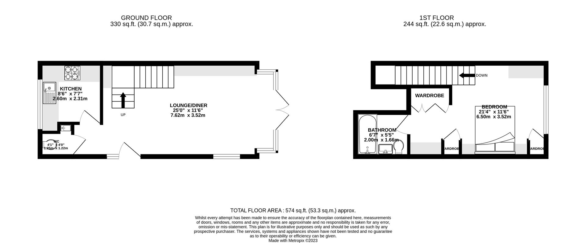 The accommodation comprises underfloor heating on the ground floor with a spacious reception room with a separate kitchen and WC. Upstairs, there is a generously sized bedroom with a bed and built-in furniture, as well as an ensuite.