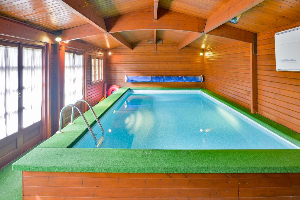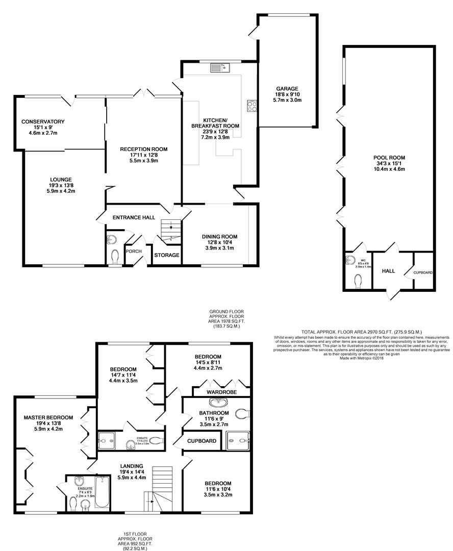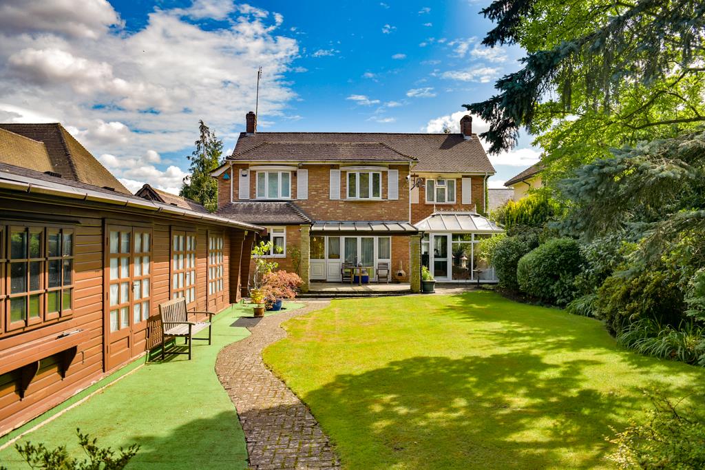 Boasting almost 3000 sq ft of accommodation the property includes a good sized entrance hall with formal lounge, formal dining room, large kitchen/breakfast room opening up to a second dining area, conservatory and w/c on the ground floor. The first floor is home to a master bedroom with en-suite and air conditioning, second double bedroom again with air conditioning and with en-suite shower room and two further double bedrooms (one of which has air conditioning) and a family bathroom. To the rear is a beautiful sunny aspect and secluded rear garden which backs onto the Spinney and local golf course. The garden is ideal for entertaining and houses a summer house with a large heated swimming pool, bar area and w/c facilities. At the front is a carriage driveway with access to a car port, garage and supplying off road parking for several vehicles.