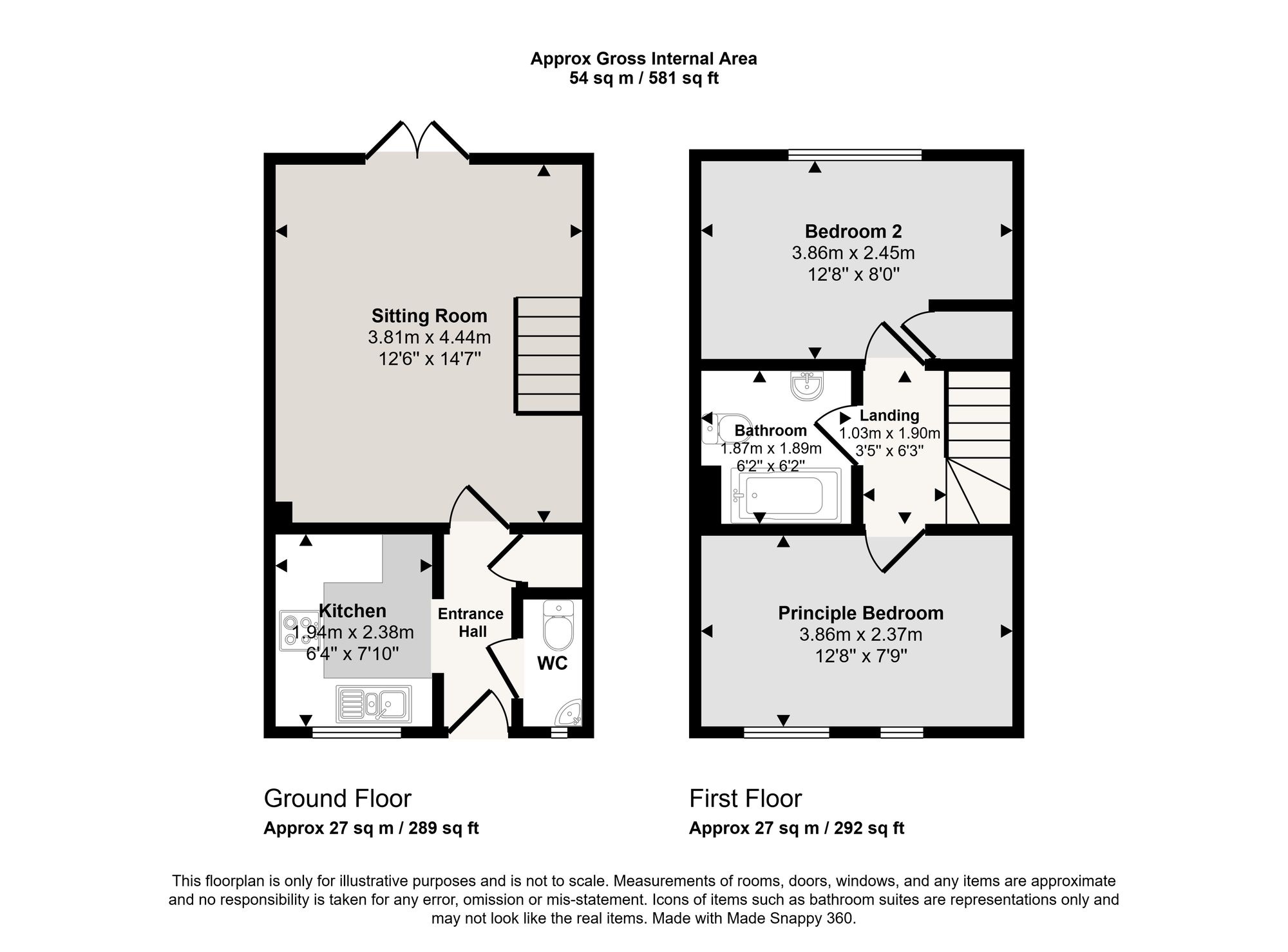 - 2 double bedrooms