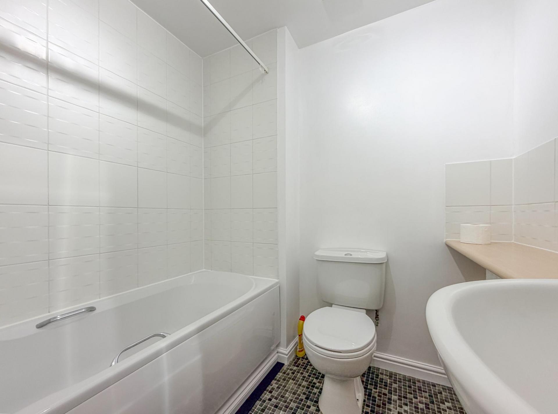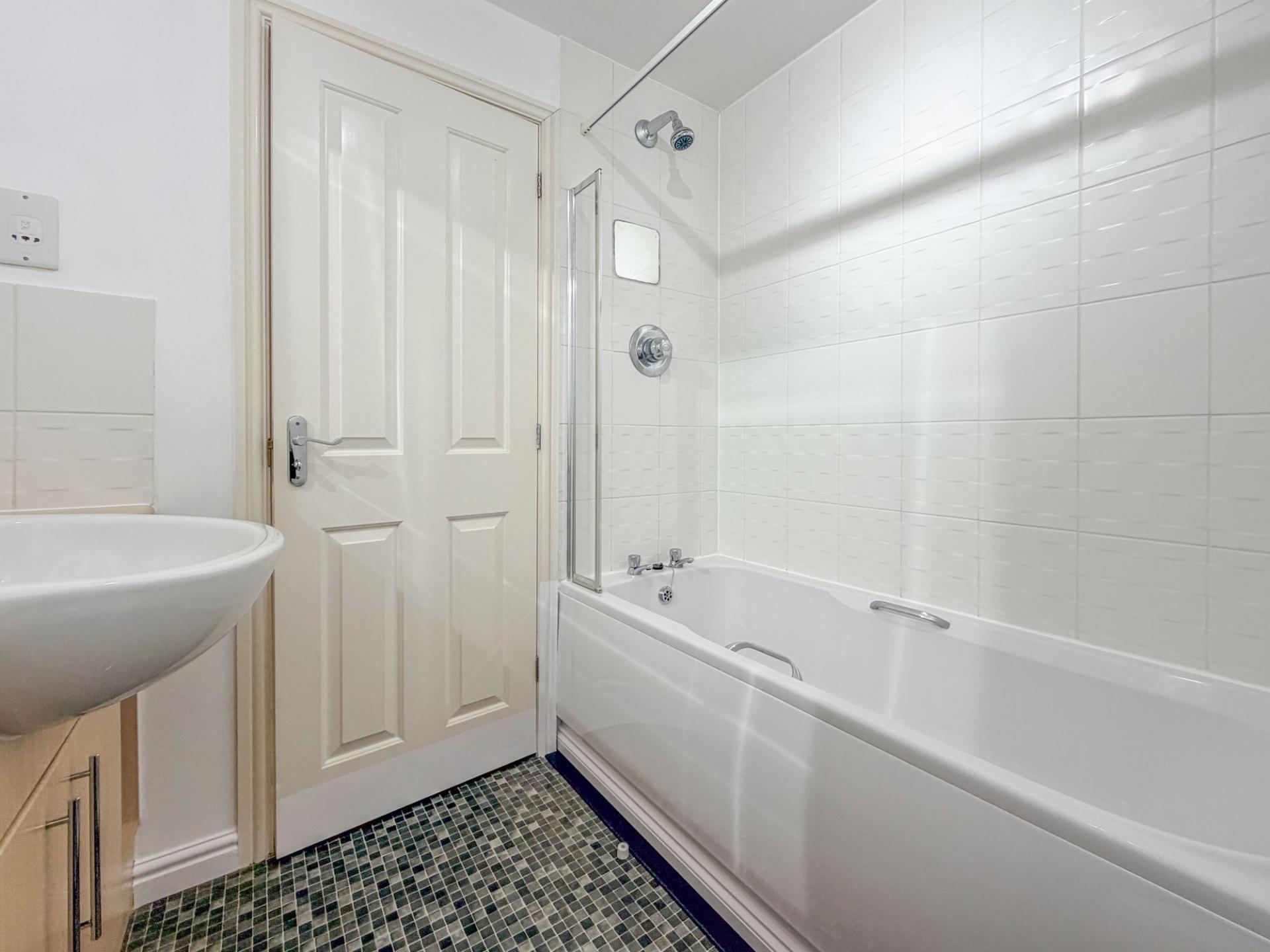 - Family bathroom with shower over bath