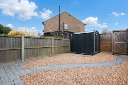 - Enclosed low-maintenance rear garden with patio and steel shed