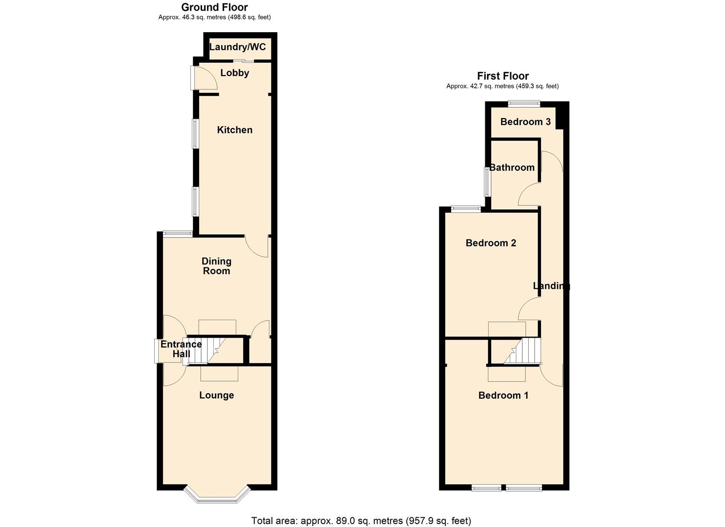 - Two double bedrooms and one single