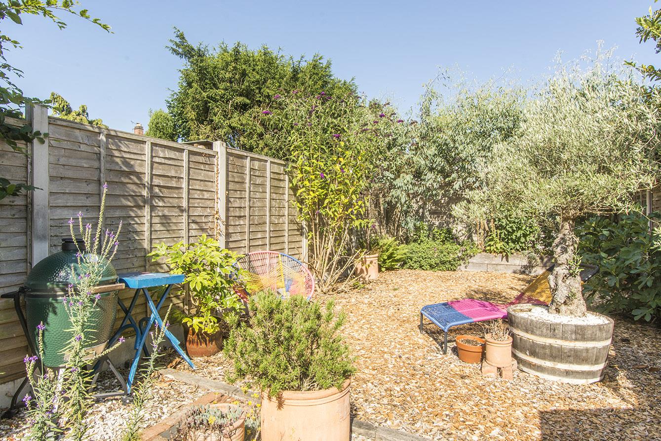 Garden - Outside, the garden is a true highlight, offering a gated access to a pebbled area with a charming pergola. The generous garden features a lush lawn and several seating areas, perfect for entertaining or simply enjoying the outdoors. The top terrace serves as a sun trap, adorned with attractive sleeper-retained shrub beds, three silver birch trees, and an eucalyptus tree, creating a serene atmosphere. Additional features include a log store and secure storage from Asgard, set on a sturdy concrete base, ensuring practicality and peace of mind.