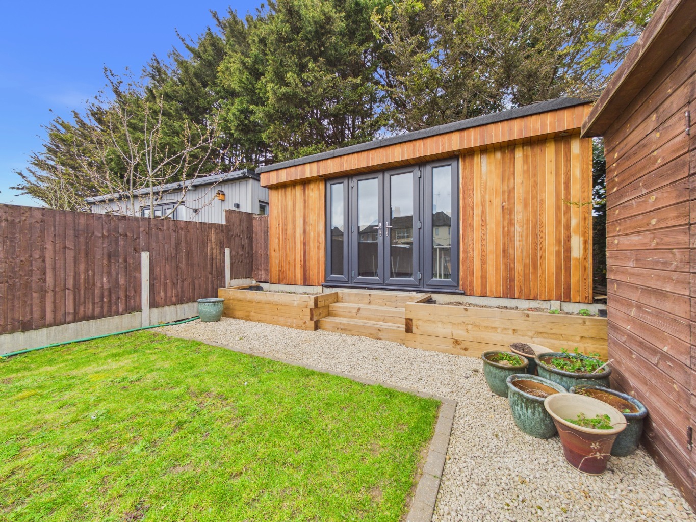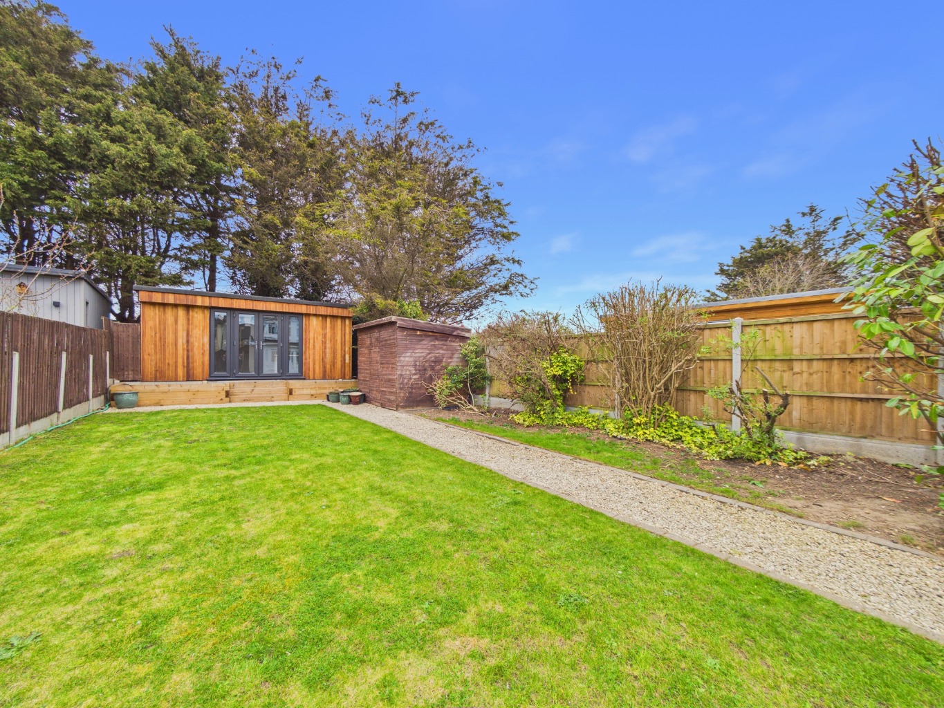 Externally, this property truly shines with the added benefit of off-street parking, a highly sought-after feature. The rear garden includes a charming log cabin, offering versatile space that could be used as a home office, gym, or simply a peaceful retreat. This spacious yet low-maintenance outdoor area is perfect for enjoying the warmer months.