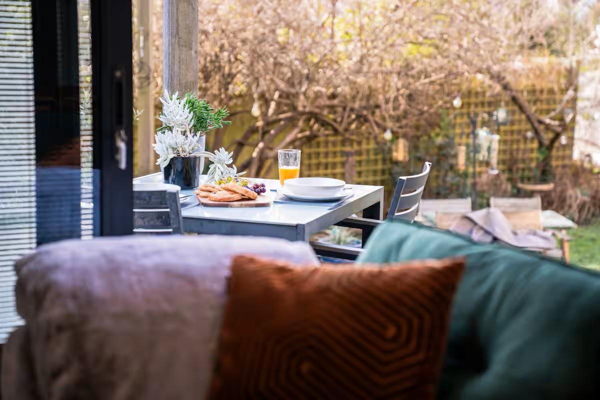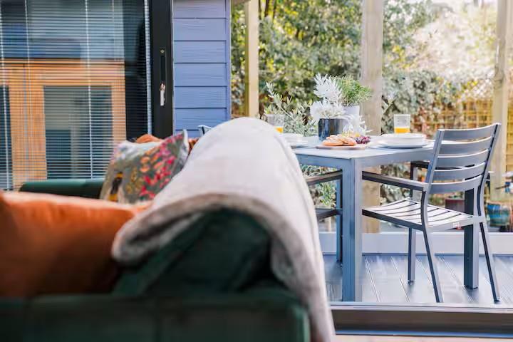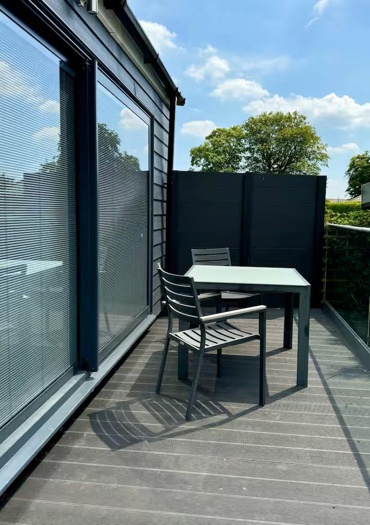 Externally, the annex enjoys access to a private balcony with table and chairs for outside dining and views over a well-maintained garden space, offering a peaceful and secluded setting.