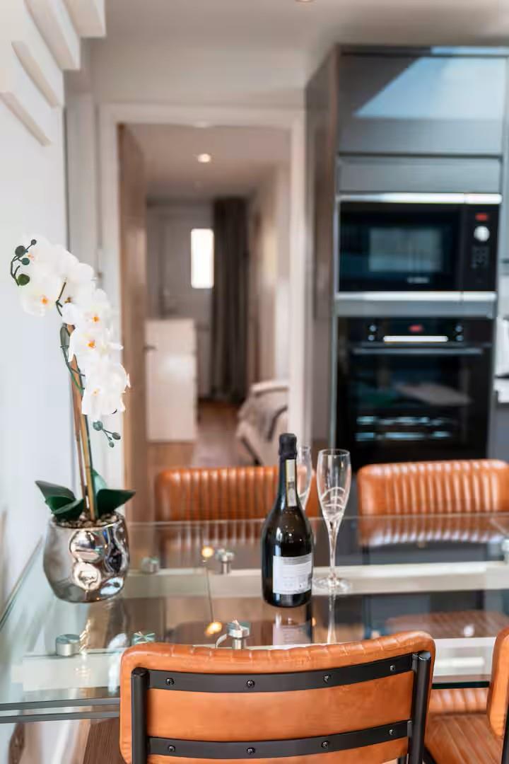 This well-designed property features a bright and spacious open-plan living area, incorporating a modern fitted kitchen with integrated appliances, sleek cabinetry, and ample worktop space. The living area benefits from large glazed doors, allowing an abundance of natural light while providing direct access to a private outdoor seating area-perfect for relaxing or entertaining.