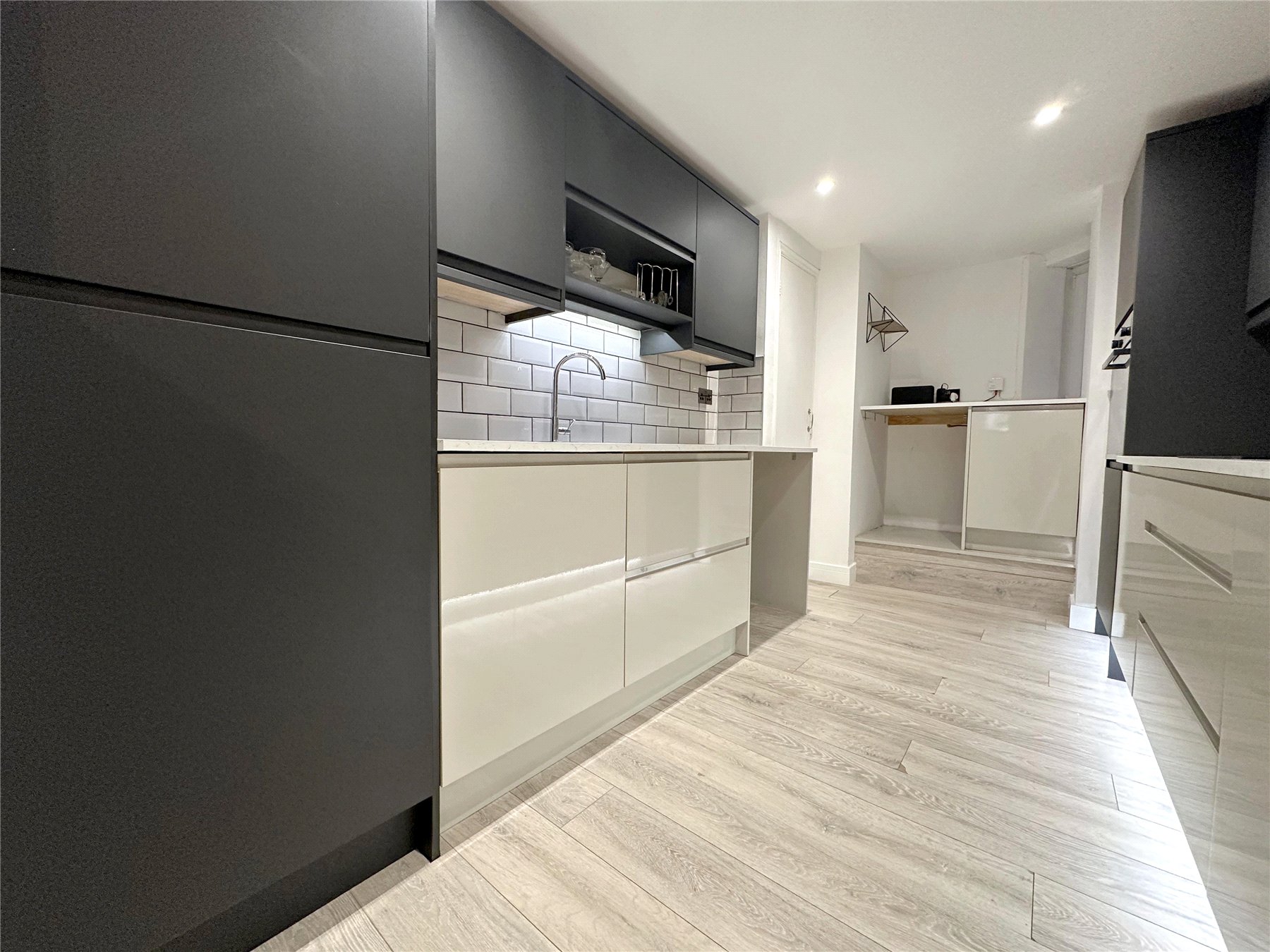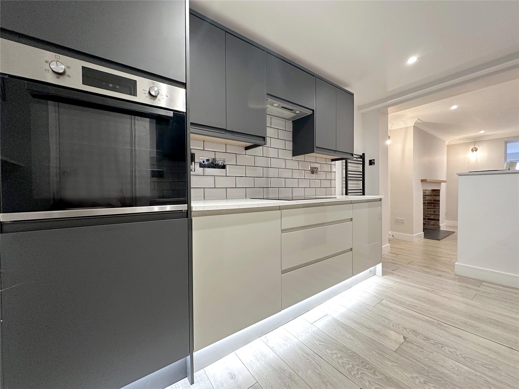 KITCHEN 7'11" x 12' (2.41m x 3.66m). This newly refurbished kitchen offers a stylish and practical layout, featuring a wide range of wall and floor mounted cupboards and drawers that provide ample storage. Induction hob and an integrated extractor above. built-in electric oven. A stainless steel sink with drainer and mixer tap. Integrated dishwasher and fridge freezer. Space for a washing machine and tumble dryer. Undercounter lighting. Handy storage cupboard with shelving adds further utility. The space is finished with a heated towel rail and a double-glazed side window.