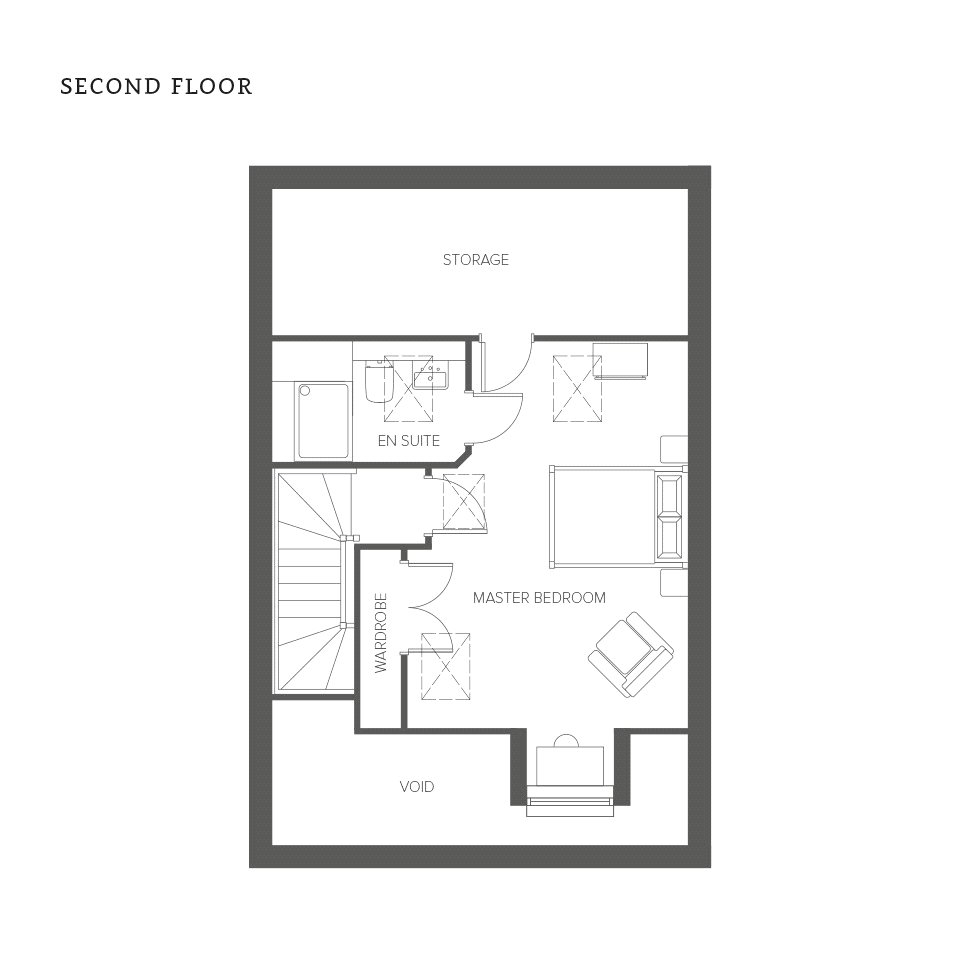 To the second floor is the stunning master bedroom benefitting from a modern en suite shower room and built in wardrobe and large storage room.