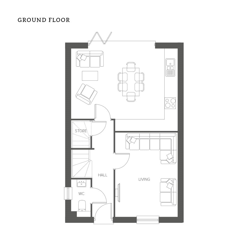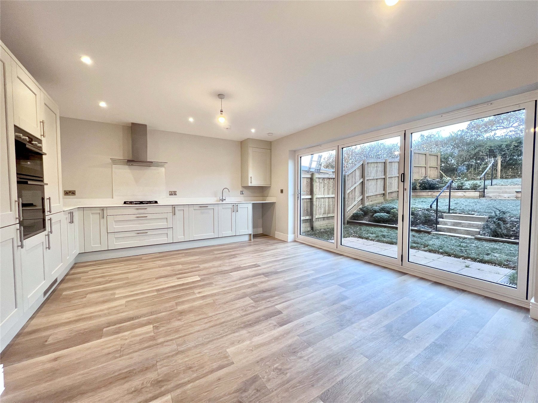 The open plan kitchen/dining area spans the back of the house, with bi-folding doors opening onto the garden. a spacious living room and cloakroom complete the ground floor.