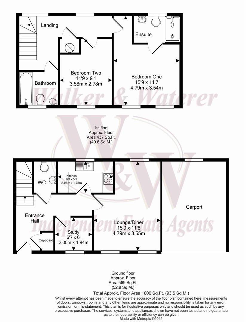 The accommodation is set over 2 floors with a Lounge/Diner, Study, Kitchen and Cloakroom on the ground floor along with two double bedrooms, one with an En-Suite shower room and a family bathroom on the first floor. Outside there is a Carport and an additional parking space.