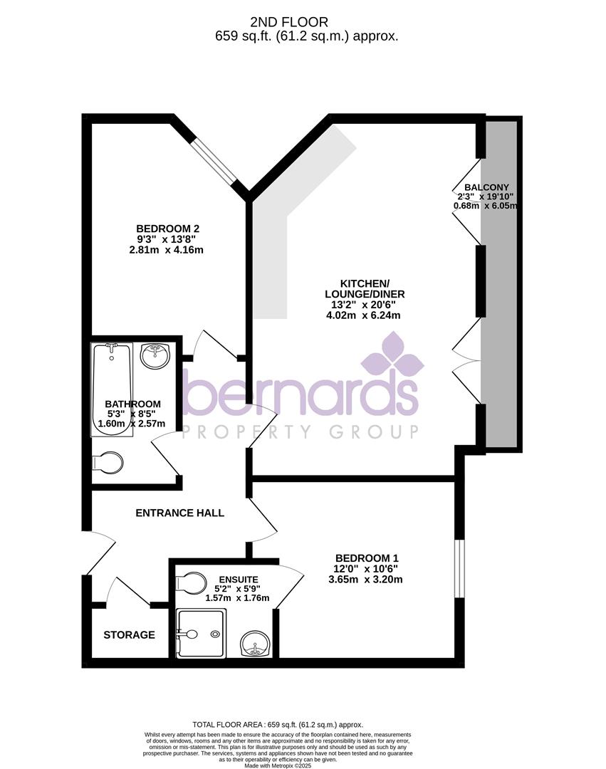 The main bedroom benefits from an en suite bathroom, adding an extra level of convenience, while the second bedroom is generously sized.