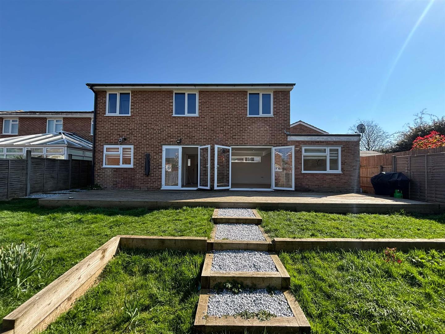 The large garden is a standout feature, complete with a decking area, perfect for outdoor dining.