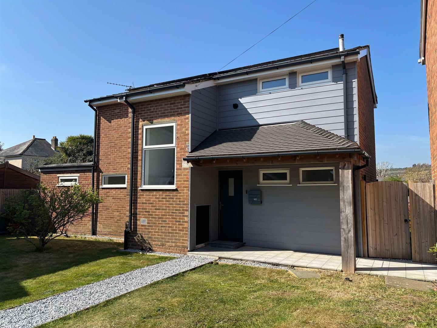 As you approach the property, you'll notice the inviting, well-lit porch that adds a welcoming touch. There's also side access to the spacious garden, allowing for easy indoor and outdoor living.