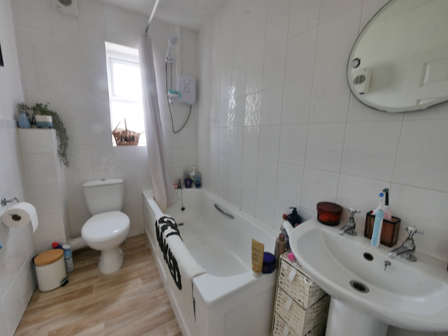 The ground floor boasts a bright and airy open-plan kitchen and living area, offering the perfect setting for both relaxing evenings and entertaining guests. Upstairs, there are two bedrooms along with a contemporary bathroom complete with a shower over the bath.