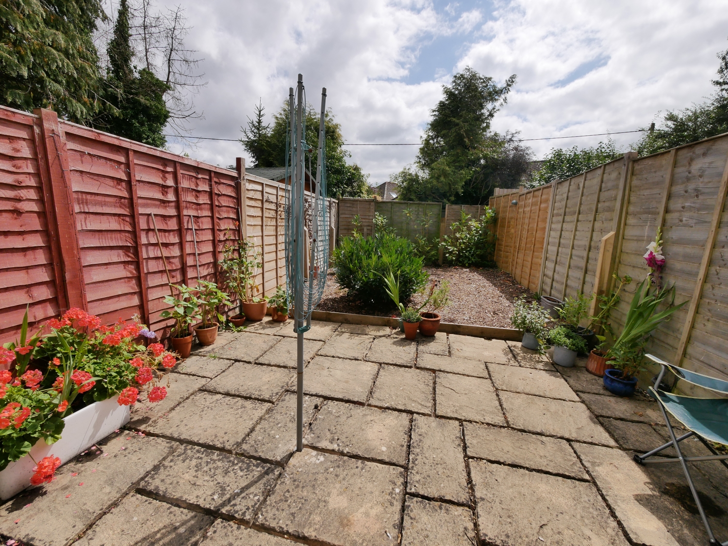 Outside, a low-maintenance patio garden provides an ideal space for outdoor dining or enjoying a quiet moment, while the property also benefits from the convenience of two allocated parking spaces.