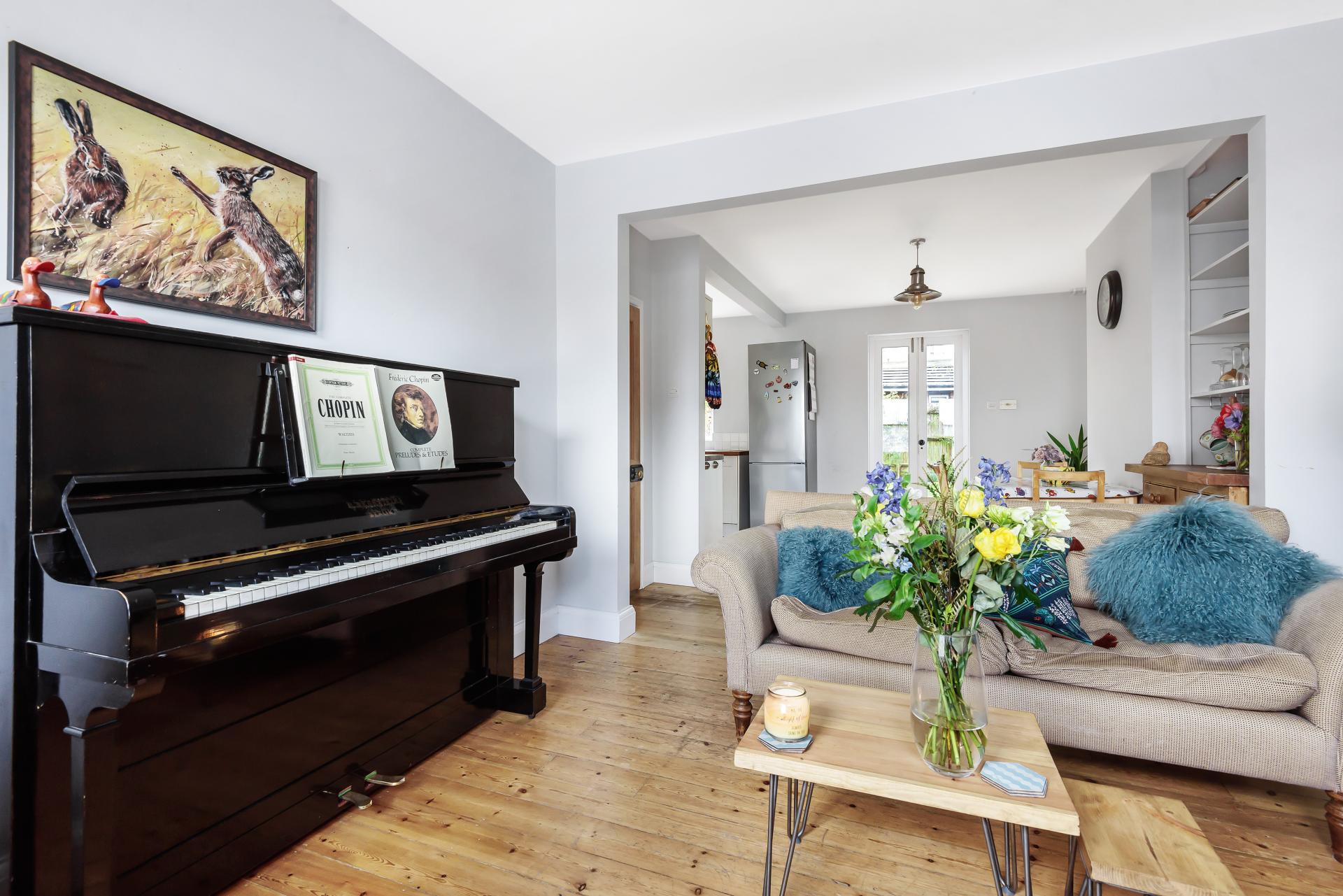 Outside, the property benefits from a private driveway, side access and a charming rear garden that enjoys afternoon and evening sun. The location is exceptionally convenient, with local shops, cafés and frequent London Waterloo services just moments away, as well as several excellent schools within easy reach.