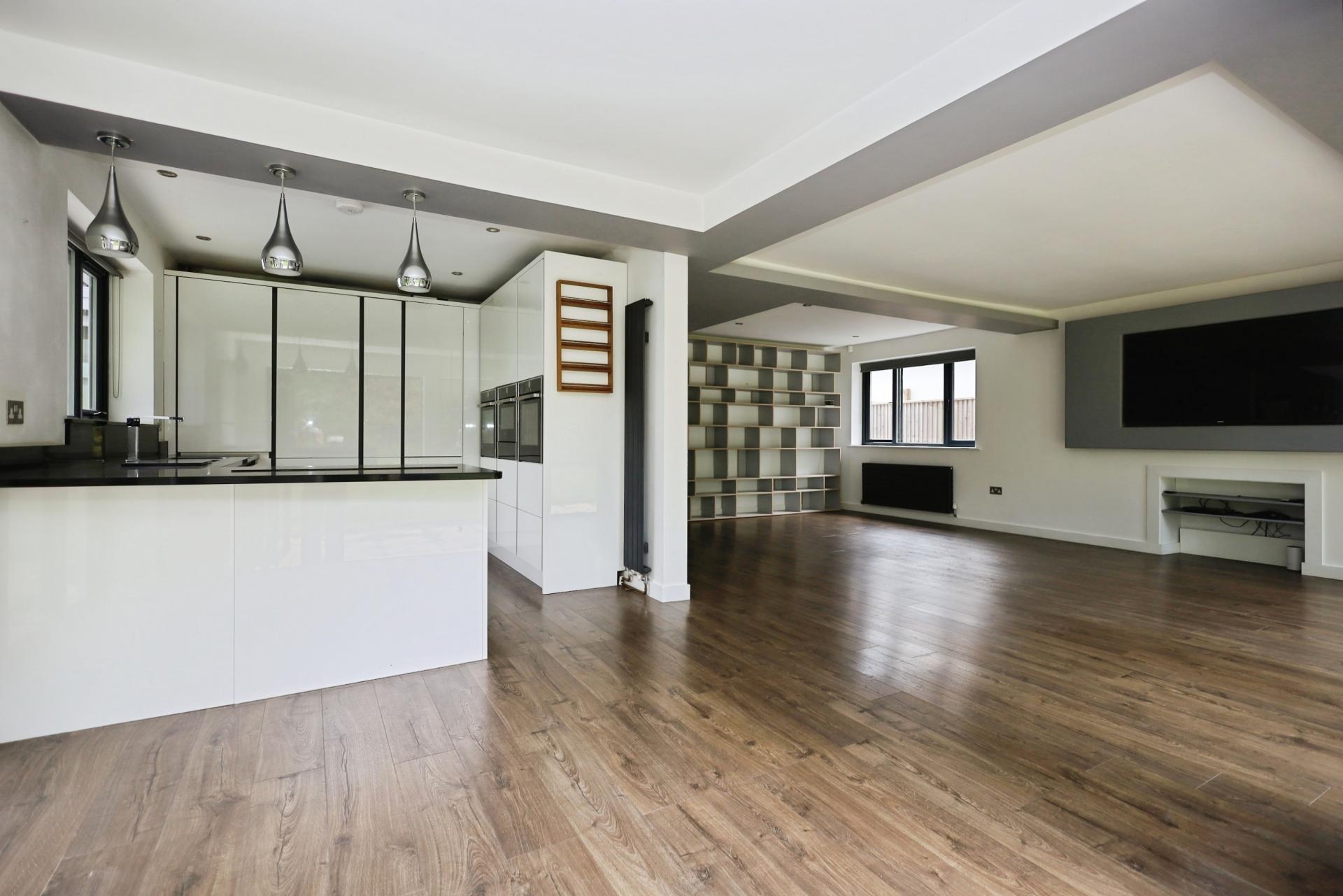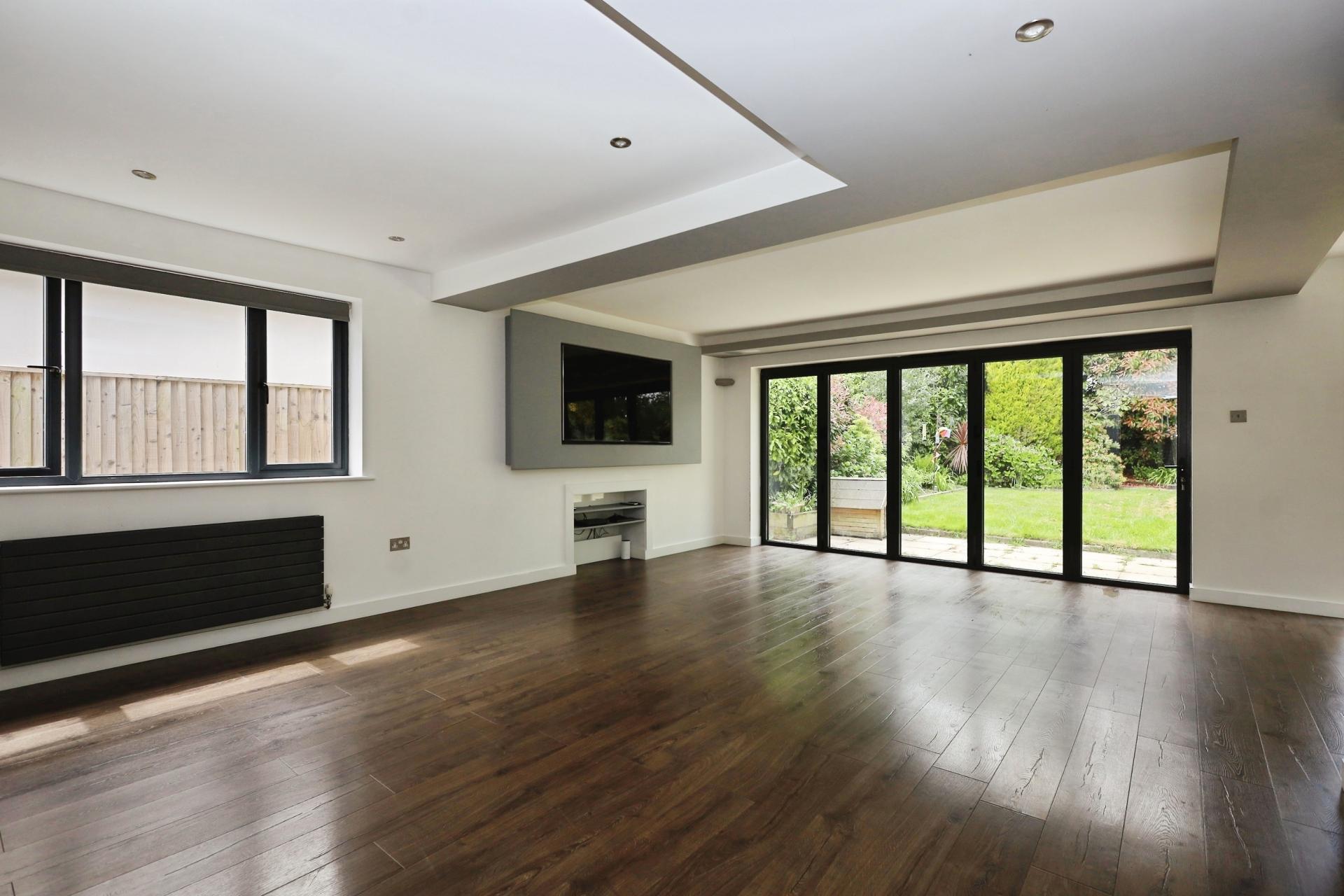 Inside, the accommodation is spacious and well appointed throughout. The ground floor features a welcoming entrance hall with a contemporary oak and glass staircase leading to the first floor. There are two ground-floor bedrooms, a modern family bathroom, a large utility room, and a breathtaking open-plan kitchen/living/dining area with bi-folding doors opening directly onto the rear garden.