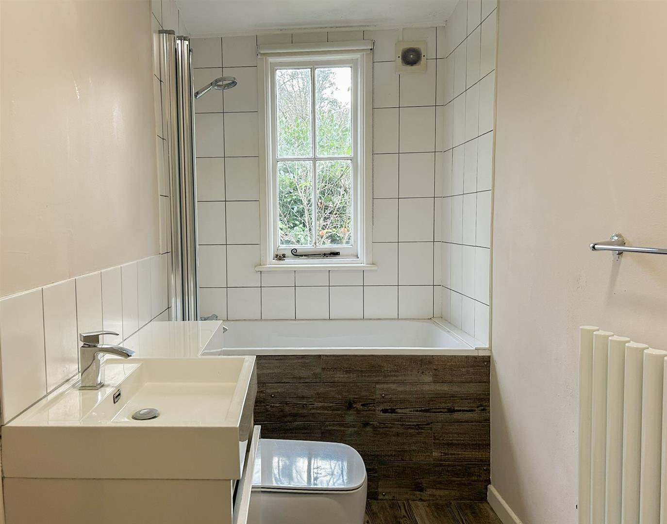 - Bathroom with thermostatic shower over bath