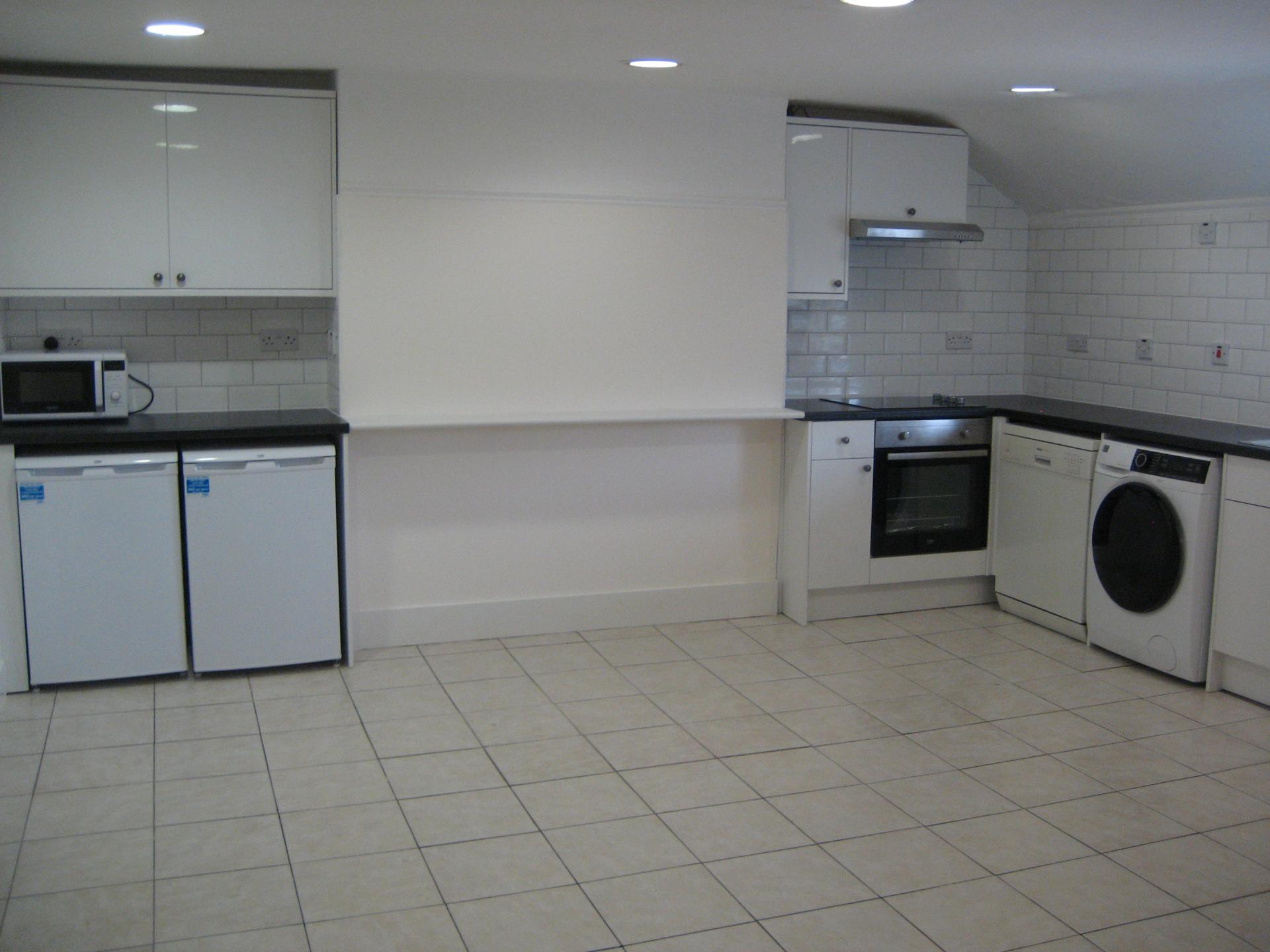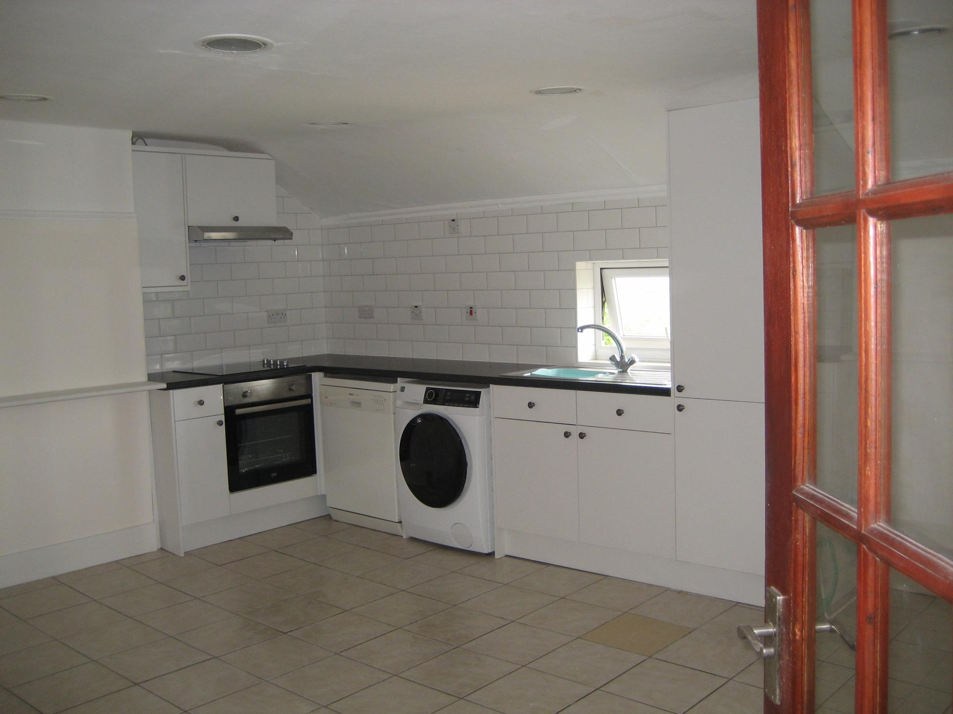 Two bedroom top floor flat in Victorian conversion house. Very large kitchen/lounge with appliances, could be used as kitchen/diner and then have one bedroom. Shower room with shower, separate toilet and hand basin. No pets allowed.