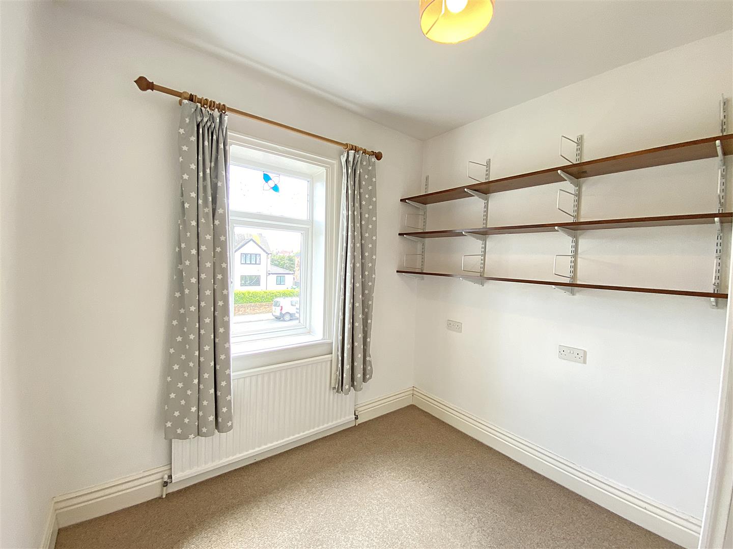 Bedroom 4 - UPVC Duble glazed window, radiator, carpet, built in storage cupboards and shelves