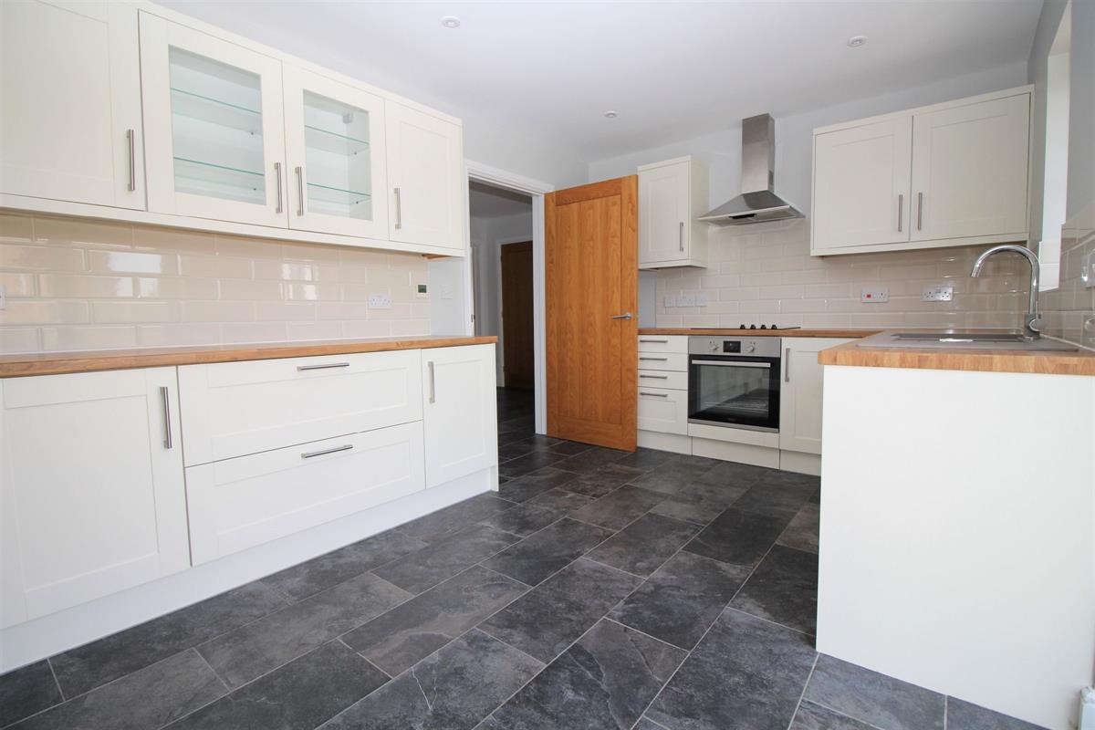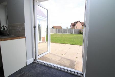 subway splashback tiles, skimmed ceiling with recessed spot lighting, double glazed window to rear and double glazed French doors to rear garden.