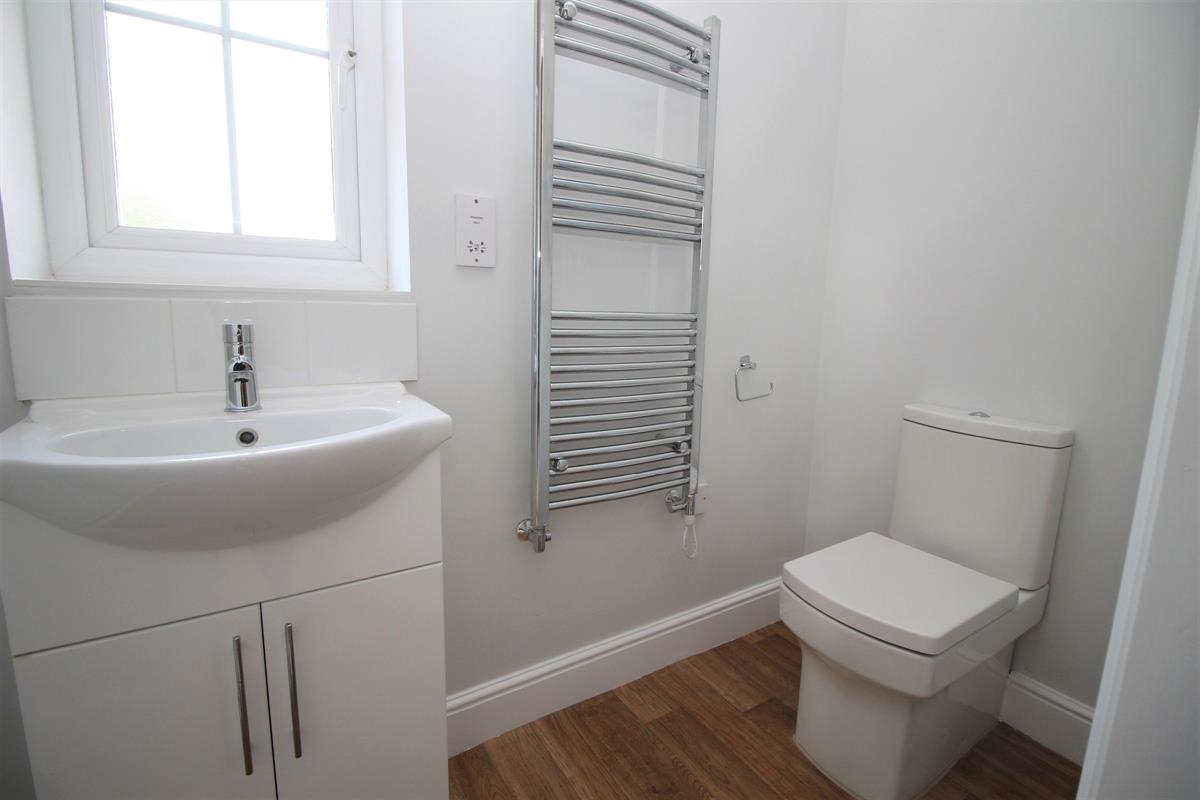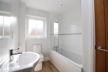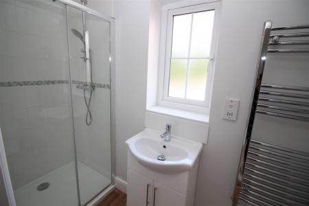 Comprising of built in shower cubicle with wall mounted shower attachment, vanity wash hand basin with mixer taps and low level W.C, obscure double glazed window, laminate wood effect style flooring, towel radiator.