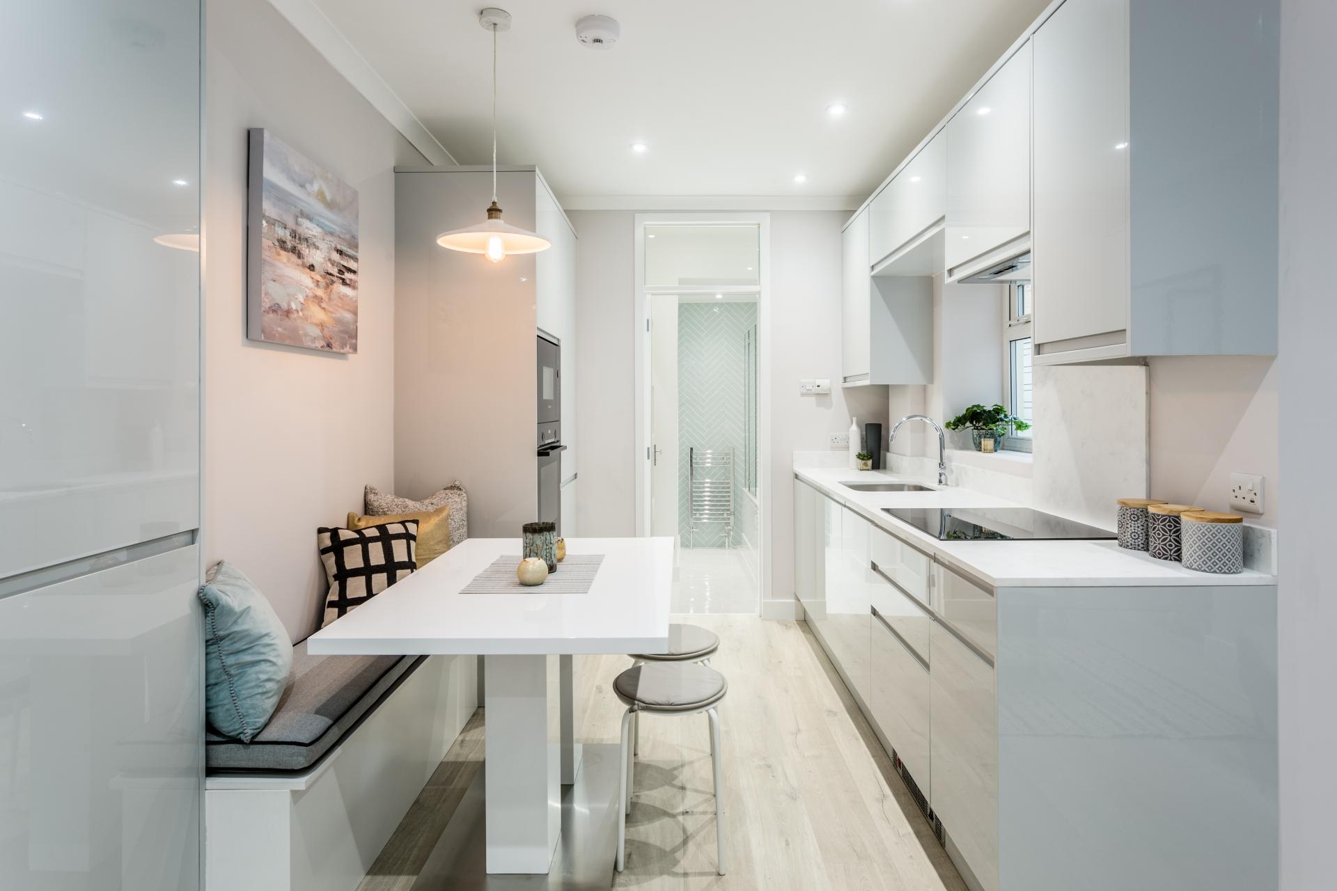 It has a stunning kitchen with a composite worktop, fully fitted with integrated dishwasher, oven, microwave, tall fridge freezer and induction hob. A bespoke banquette with storage has been installed to create a pleasant area for dining and entertaining. The living room is spacious with plenty of room to relax and includes built-in storage space cleverly designed for modern living.