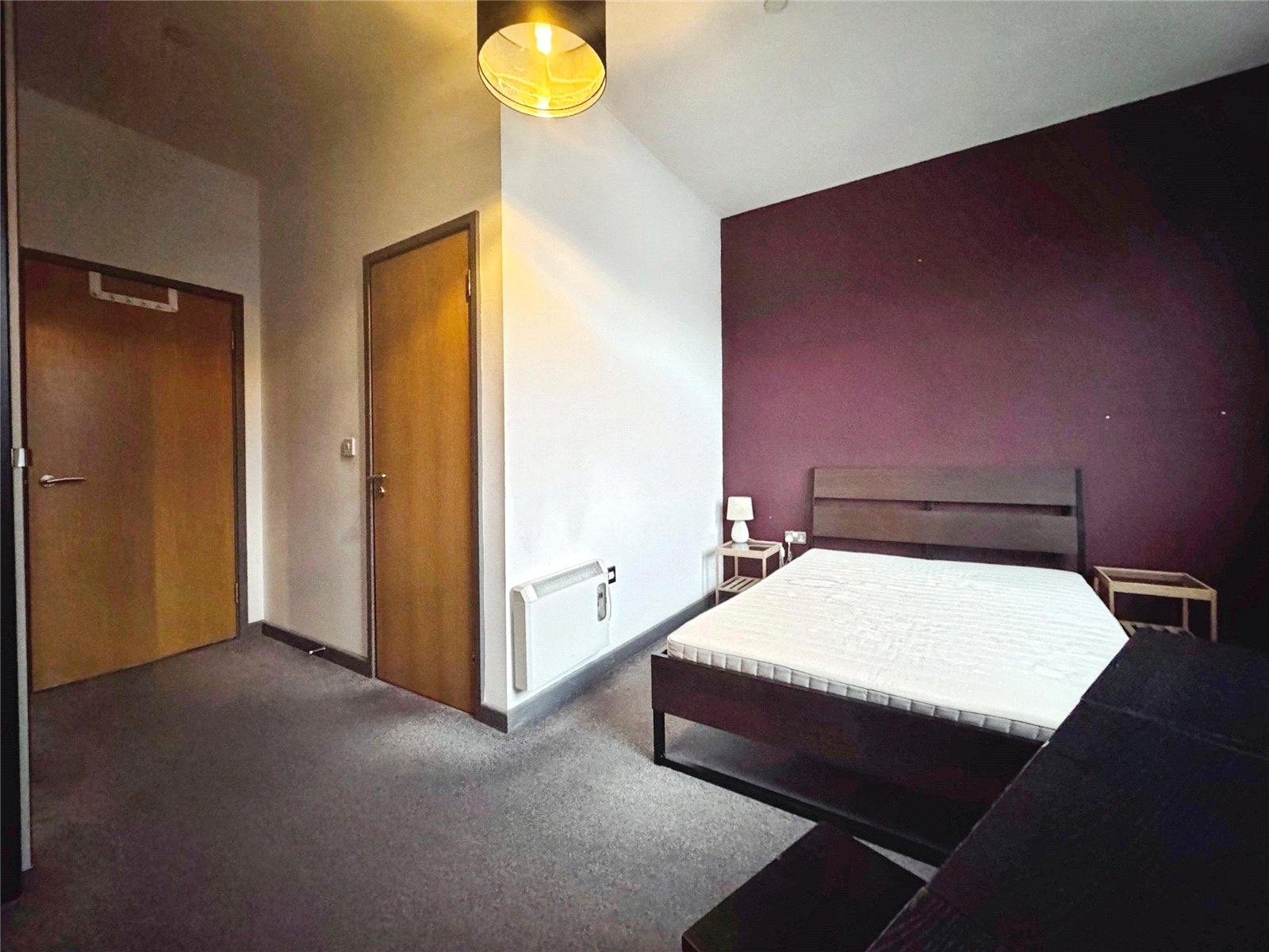 Two double glazed sash windows, wall mounted electric heater.