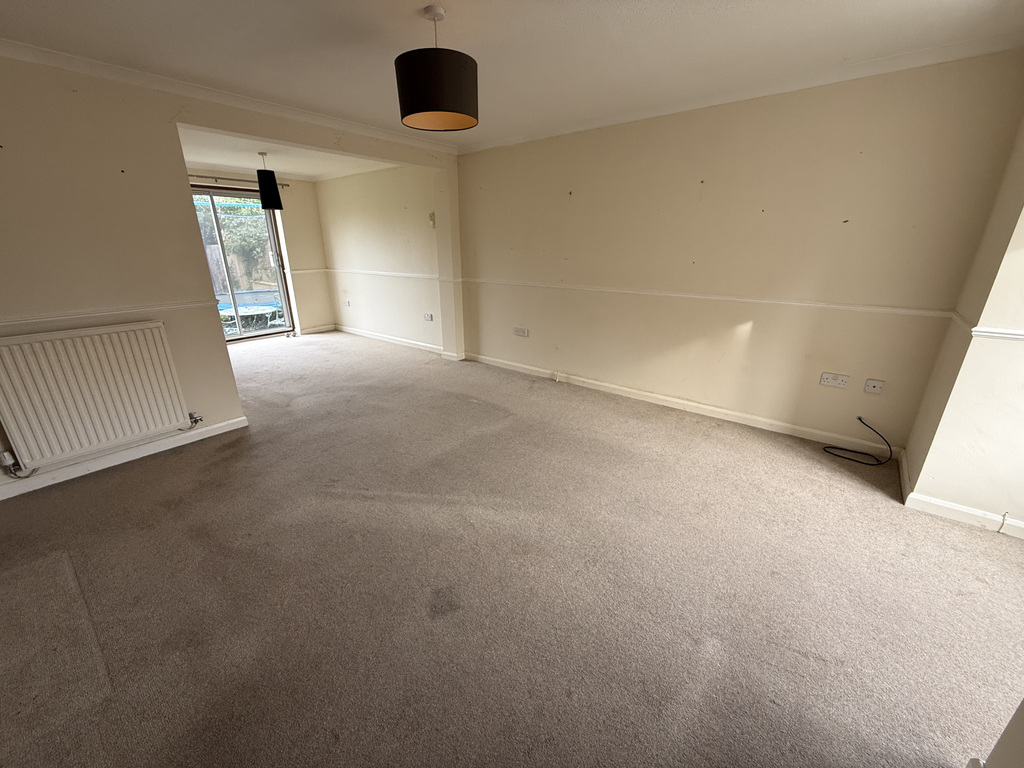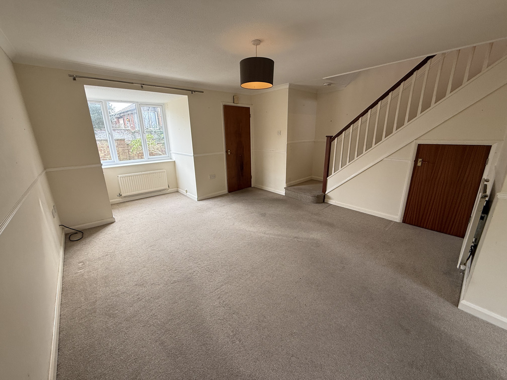 Stairs rising to the first floor landing with understair storage cupboard. Three radiators. Picture rail. Gas point for a fire. Square bay window to front. Dado rail. Sliding patio doors to the rear garden. Door to: