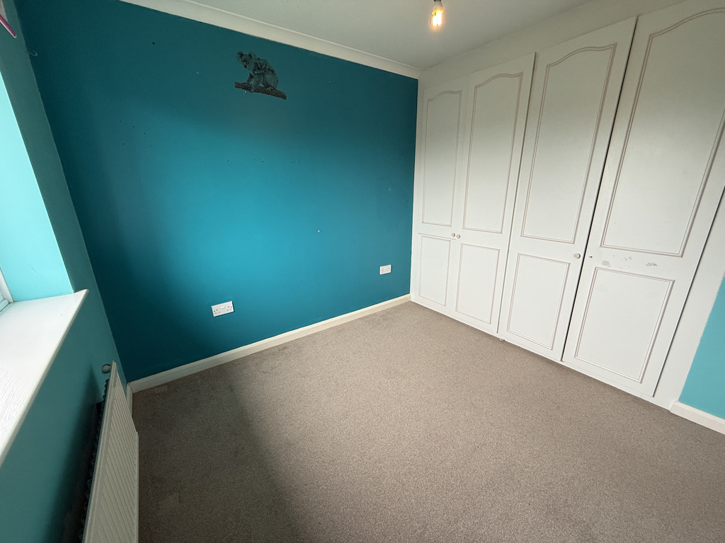Range of built-in wardrobes across one wall. Window overlooking the rear garden. Radiator.