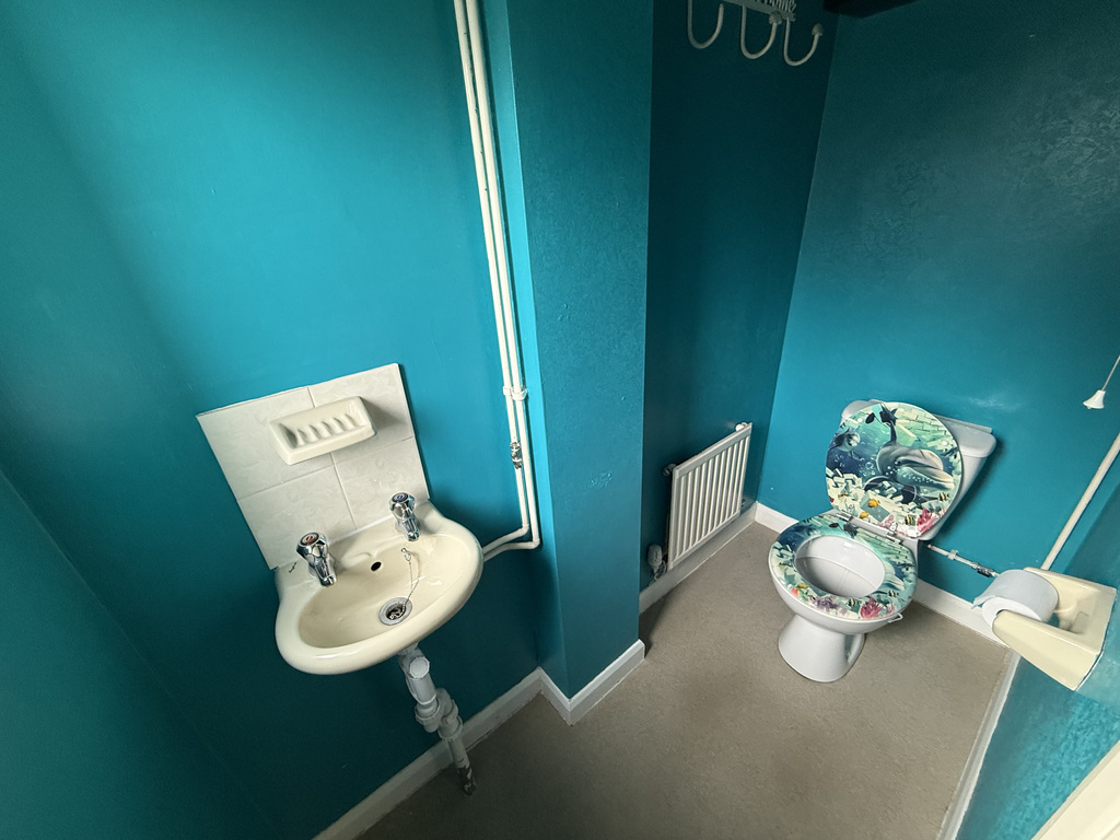 Suite comprises of a WC and wash hand basin. Window to front. Radiator.