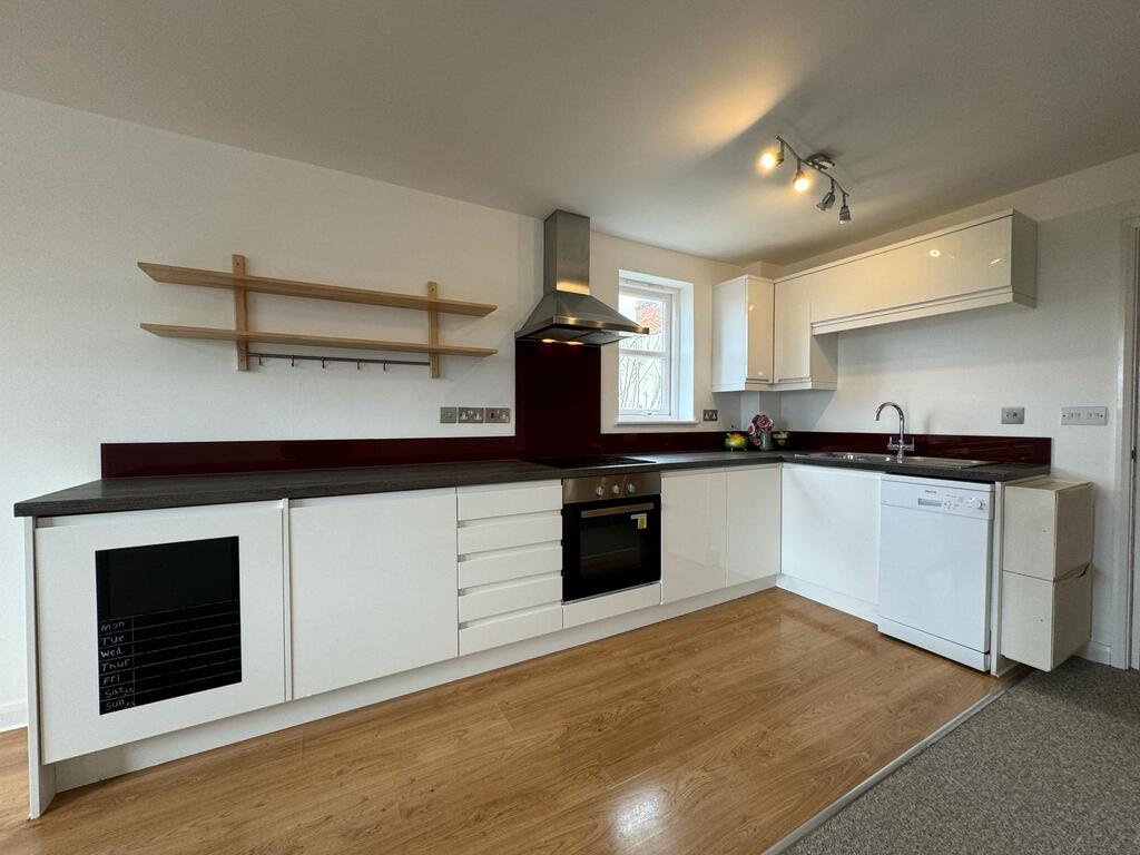 A modern first floor apartment located in the heart of Glastonbury, just a short walk from the high street. Off of the entrance hallways is located two good sized bedrooms, one double and one single, as well as the family bathroom with shower over bath. To the rear of the property is located the spacious open plan lounge diner and modern kitchen, which benefits from integrated fridge and freezer. One allocated parking space. Pets considered. Available now. Deposit equivalent to 5 weeks rent.