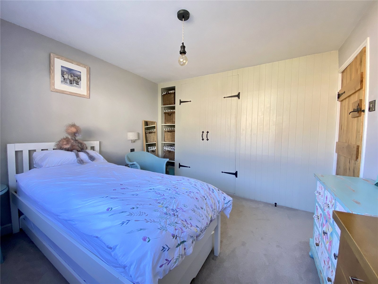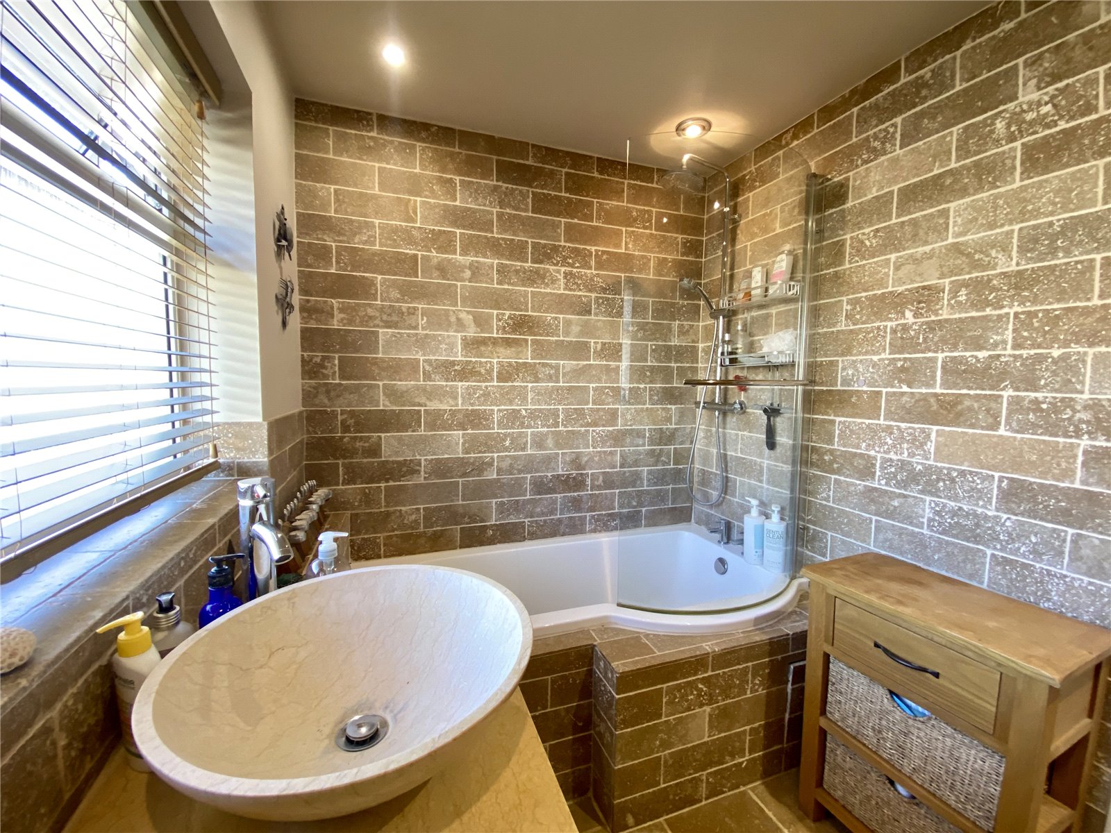 Upstairs, the spacious bedrooms provide ample space for relaxation and rest, with the main bedroom also benefitting from the amazing views. The main bedroom and second bedroom also featuring bespoke fitted wardrobes. Upstairs, you can also find the modern bathroom with shower over bath.